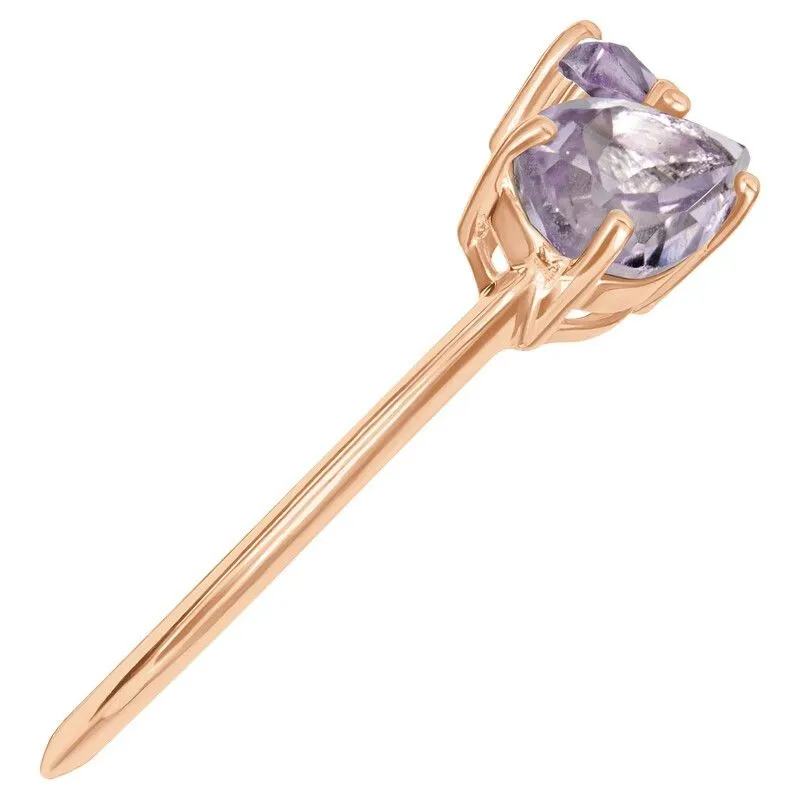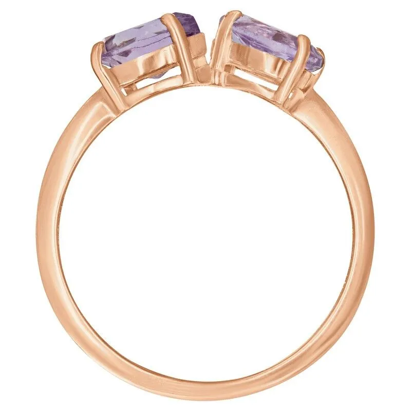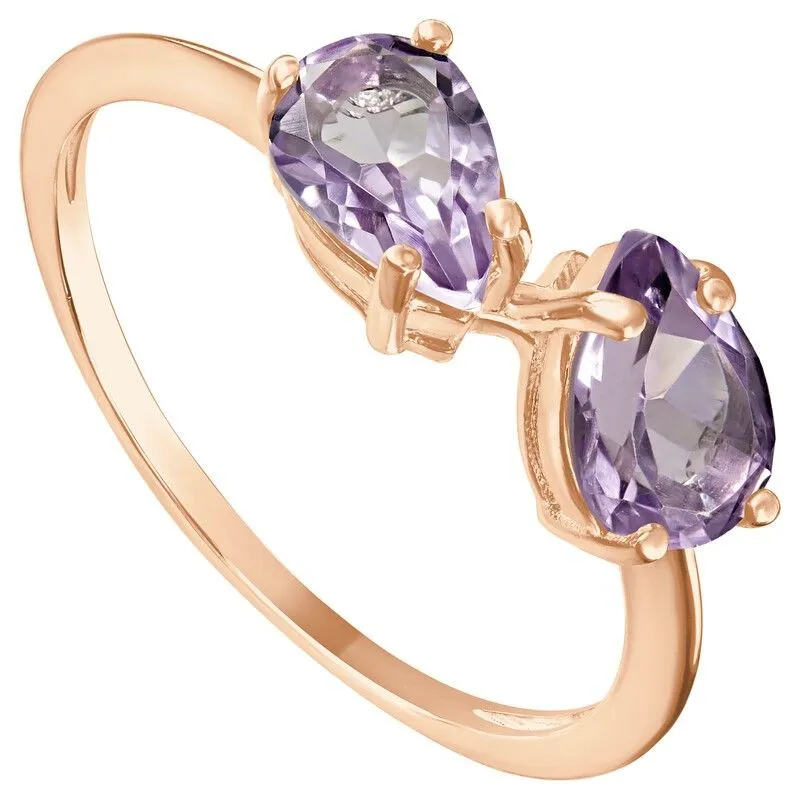 Серебряное кольцо с натуральным аметистом (светлый) - коллекция Дуэт / покрытие Красное Золото.Средний вес украшения с камнями 1.55 гр.Месторождение(я): Аметист (Приполярный Урал, Россия).Ювелирные вставки:Аметист (Натуральный) груша 5*7 мм., средний вес: 0.65 карат.Все изделия собственного производства и имеют гарантию 12 месяцев. Арт. 8623RG. Аметист — прозрачный или полупрозрачный камень фиолетовых оттенков, подвид кварца. Он гармонизирует разум, снимает стресс, улучшает кровообращение, способствует умственному развитию и личностному росту. Считается, что он также оберегает от головной боли и бессонницы, служит противоядием, помогает избавиться от алкоголизма и наделяет владельца проницательностью, раскрывая «третий глаз» (за который отвечает чакра аджна). В медитации помогает расслабиться и успокоиться. Положенный под подушку, аметист приносит хорошие сны.