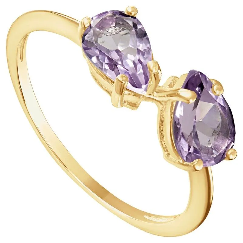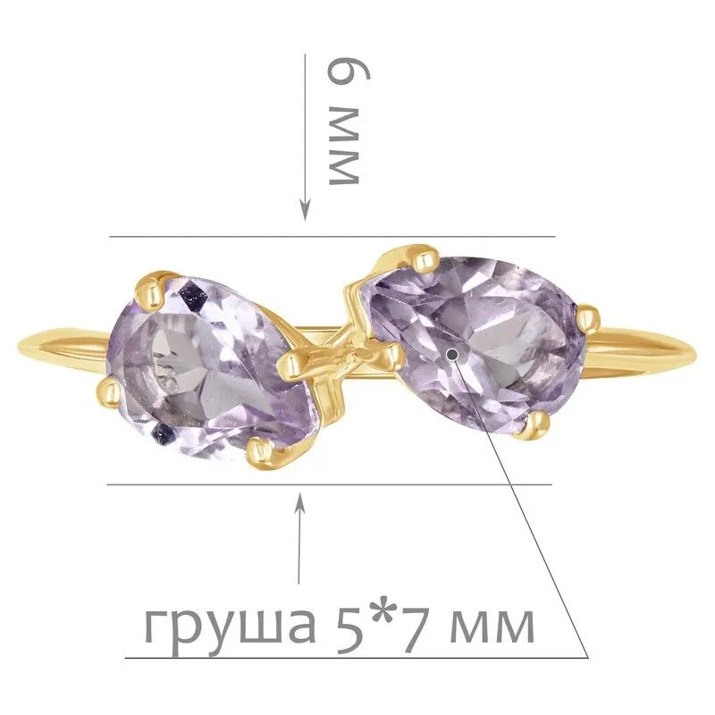 Серебряное кольцо с натуральным аметистом (светлый) - коллекция Дуэт / покрытие Желтое Золото.Средний вес украшения с камнями 1.52 гр.Месторождение(я): Аметист (Приполярный Урал, Россия).Ювелирные вставки:Аметист (Натуральный) груша 5*7 мм., средний вес: 0.65 карат.Все изделия собственного производства и имеют гарантию 12 месяцев. Арт. 8623YG. Аметист — прозрачный или полупрозрачный камень фиолетовых оттенков, подвид кварца. Он гармонизирует разум, снимает стресс, улучшает кровообращение, способствует умственному развитию и личностному росту. Считается, что он также оберегает от головной боли и бессонницы, служит противоядием, помогает избавиться от алкоголизма и наделяет владельца проницательностью, раскрывая «третий глаз» (за который отвечает чакра аджна). В медитации помогает расслабиться и успокоиться. Положенный под подушку, аметист приносит хорошие сны.