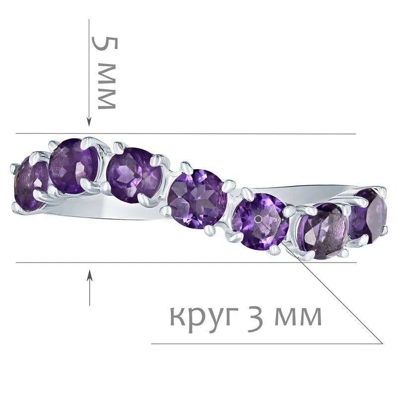 Серебряное кольцо с натуральным аметистом (темный) - коллекция Волна / покрытие Чистое Серебро.Средний вес украшения с камнями 1.28 гр.Месторождение: Аметист (Приполярный Урал, Россия)Ювелирные вставки:Аметист (Натуральный) круг 3 мм., средний вес: 0.58 карат.Все изделия собственного производства и имеют гарантию 12 месяцев. Арт. 8724AG. Аметист — прозрачный или полупрозрачный камень фиолетовых оттенков, подвид кварца. Он гармонизирует разум, снимает стресс, улучшает кровообращение, способствует умственному развитию и личностному росту. Считается, что он также оберегает от головной боли и бессонницы, служит противоядием, помогает избавиться от алкоголизма и наделяет владельца проницательностью, раскрывая «третий глаз» (за который отвечает чакра аджна). В медитации помогает расслабиться и успокоиться. Положенный под подушку, аметист приносит хорошие сны.