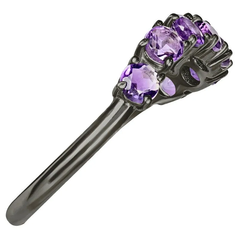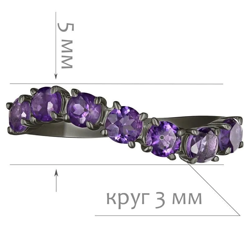 Серебряное кольцо с натуральным аметистом (темный) - коллекция Волна / покрытие Черный Родий.Средний вес украшения с камнями 1.24 гр.Месторождение: Аметист (Приполярный Урал, Россия)Ювелирные вставки:Аметист (Натуральный) круг 3 мм., средний вес: 0.79 карат.Все изделия собственного производства и имеют гарантию 12 месяцев. Арт. 8724BR. Аметист — прозрачный или полупрозрачный камень фиолетовых оттенков, подвид кварца. Он гармонизирует разум, снимает стресс, улучшает кровообращение, способствует умственному развитию и личностному росту. Считается, что он также оберегает от головной боли и бессонницы, служит противоядием, помогает избавиться от алкоголизма и наделяет владельца проницательностью, раскрывая «третий глаз» (за который отвечает чакра аджна). В медитации помогает расслабиться и успокоиться. Положенный под подушку, аметист приносит хорошие сны.