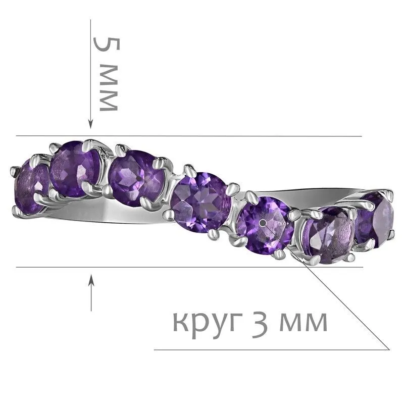 Серебряное кольцо с натуральным аметистом (темный) - коллекция Волна / покрытие Палладий.Средний вес украшения с камнями 1.34 гр.Месторождение: Аметист (Приполярный Урал, Россия)Ювелирные вставки:Аметист (Натуральный) круг 3 мм., средний вес: 0.89 карат.Все изделия собственного производства и имеют гарантию 12 месяцев. Арт. 8724PD. Аметист — прозрачный или полупрозрачный камень фиолетовых оттенков, подвид кварца. Он гармонизирует разум, снимает стресс, улучшает кровообращение, способствует умственному развитию и личностному росту. Считается, что он также оберегает от головной боли и бессонницы, служит противоядием, помогает избавиться от алкоголизма и наделяет владельца проницательностью, раскрывая «третий глаз» (за который отвечает чакра аджна). В медитации помогает расслабиться и успокоиться. Положенный под подушку, аметист приносит хорошие сны.