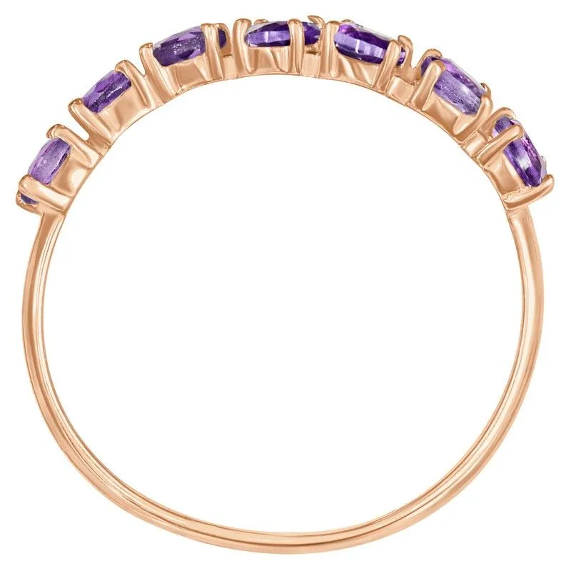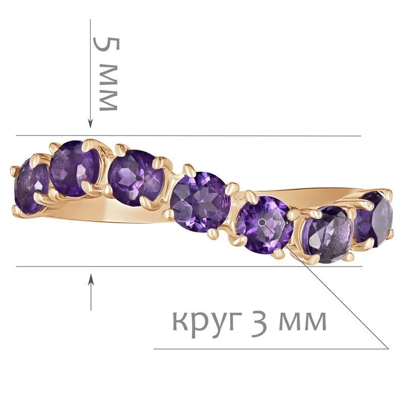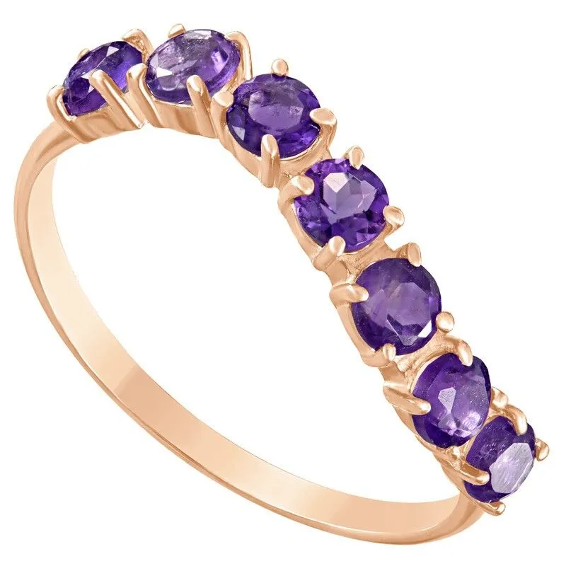 Серебряное кольцо с натуральным аметистом (темный) - коллекция Волна / покрытие Красное Золото.Средний вес украшения с камнями 1.37 гр.Месторождение: Аметист (Приполярный Урал, Россия)Ювелирные вставки:Аметист (Натуральный) круг 3 мм., средний вес: 0.76 карат.Все изделия собственного производства и имеют гарантию 12 месяцев. Арт. 8724RG. Аметист — прозрачный или полупрозрачный камень фиолетовых оттенков, подвид кварца. Он гармонизирует разум, снимает стресс, улучшает кровообращение, способствует умственному развитию и личностному росту. Считается, что он также оберегает от головной боли и бессонницы, служит противоядием, помогает избавиться от алкоголизма и наделяет владельца проницательностью, раскрывая «третий глаз» (за который отвечает чакра аджна). В медитации помогает расслабиться и успокоиться. Положенный под подушку, аметист приносит хорошие сны.