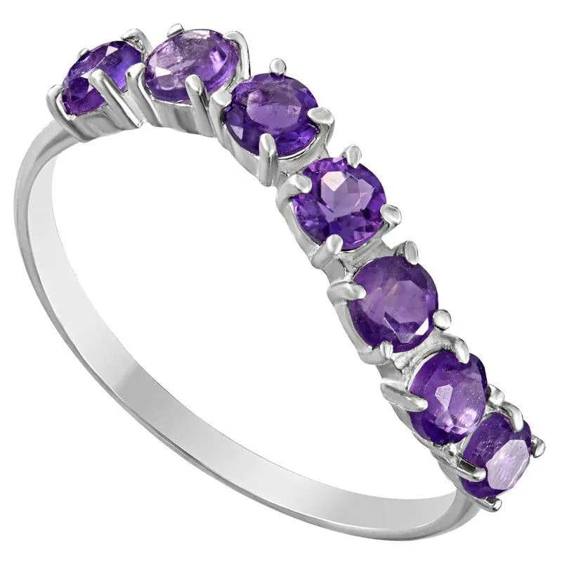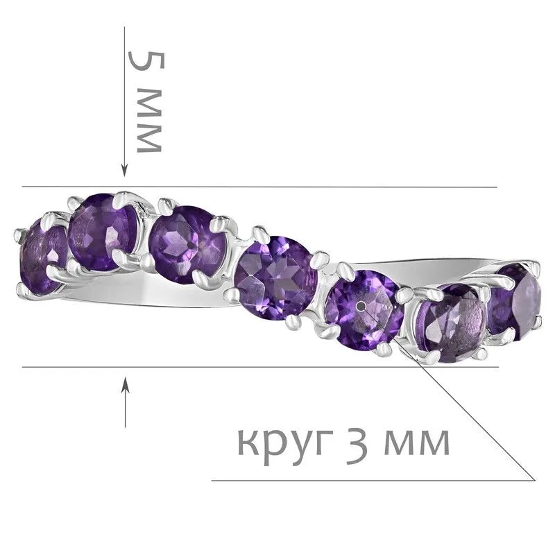 Серебряное кольцо с натуральным аметистом (темный) - коллекция Волна / покрытие Белый Родий.Средний вес украшения с камнями 1.11 гр.Месторождение: Аметист (Приполярный Урал, Россия)Ювелирные вставки:Аметист (Натуральный) круг 3 мм., средний вес: 0.65 карат.Все изделия собственного производства и имеют гарантию 12 месяцев. Арт. 8724WR. Аметист — прозрачный или полупрозрачный камень фиолетовых оттенков, подвид кварца. Он гармонизирует разум, снимает стресс, улучшает кровообращение, способствует умственному развитию и личностному росту. Считается, что он также оберегает от головной боли и бессонницы, служит противоядием, помогает избавиться от алкоголизма и наделяет владельца проницательностью, раскрывая «третий глаз» (за который отвечает чакра аджна). В медитации помогает расслабиться и успокоиться. Положенный под подушку, аметист приносит хорошие сны.