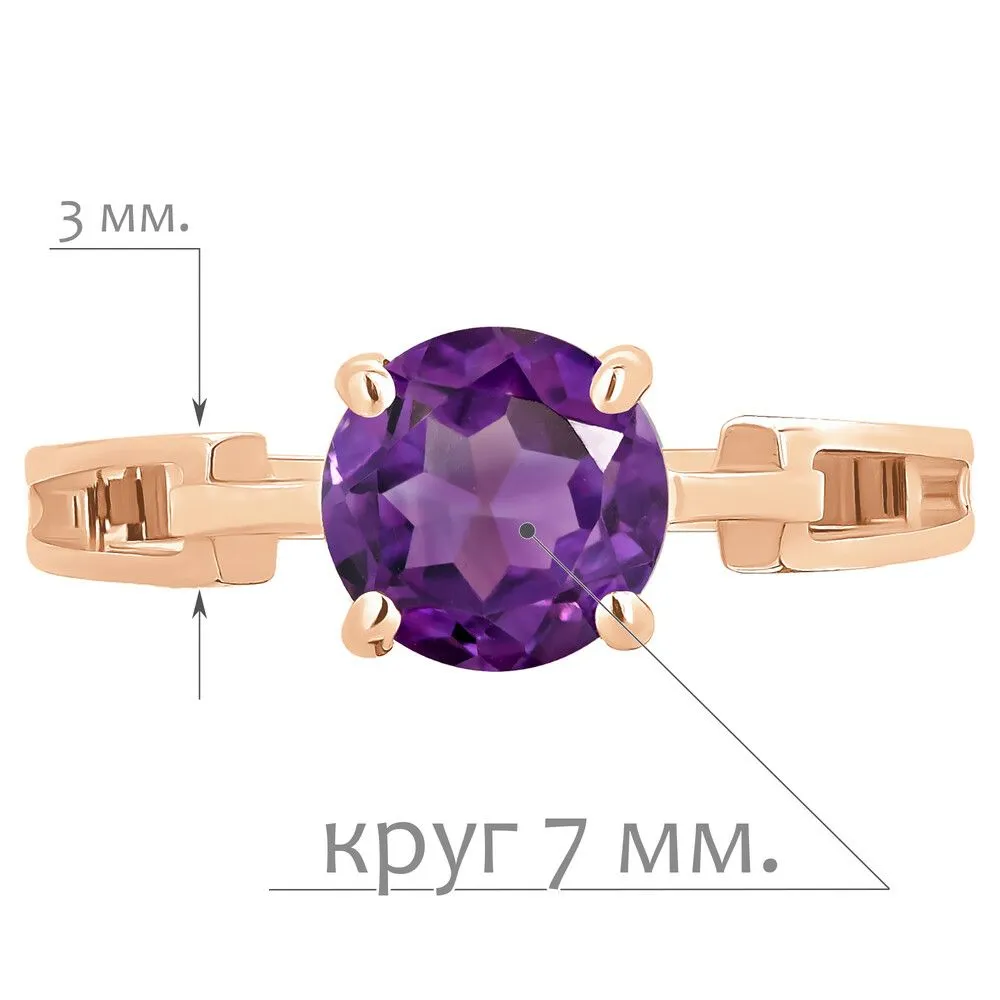 Серебряное кольцо с натуральным аметистом (темным) - коллекция Классик / Красное Золото. Средний вес украшения с камнями 1.87 гр. Месторождение: Аметист (Приполярный Урал, Россия). Ювелирные вставки: Аметист (Натуральный) круг 7 мм., средний вес: 1.21 карат. Все изделия собственного производства и имеют гарантию 12 месяцев, к каждому изделию прилагается паспорт. Арт. 8886RG