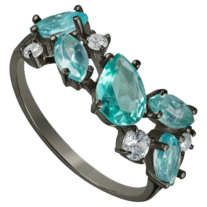 Серебряное кольцо с натуральным апатитом - коллекция Росинка, покрытие Черный Родий.