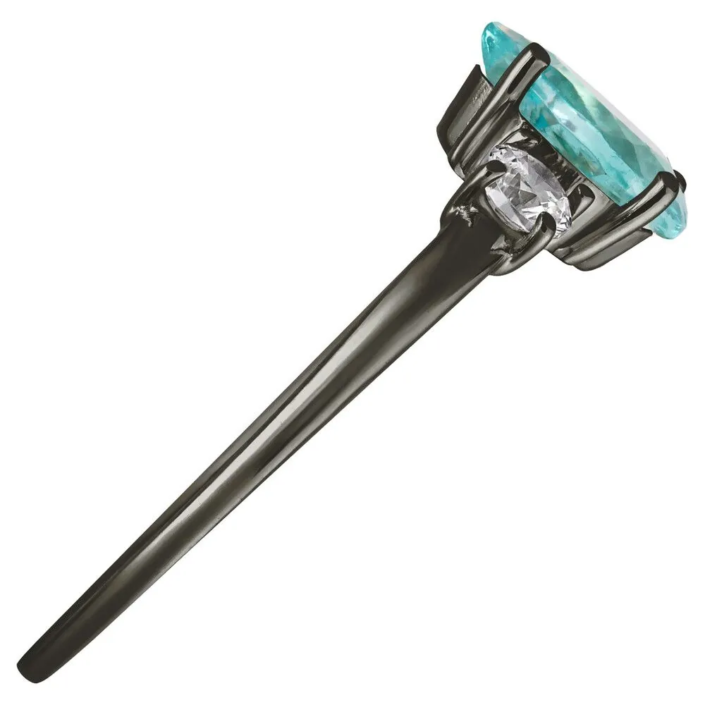Серебряное кольцо с натуральным апатитом - коллекция Алсу (малая) / Черный Родий. Средний вес украшения с камнями 1.34 гр. Месторождение: Апатит (Мадагаскар). Ювелирные вставки: Апатит (Натуральный) груша 5*7 мм., средний вес: 0.66 карат. Белый Нанокристалл круг 3 мм. Все изделия собственного производства и имеют гарантию 12 месяцев, к каждому изделию прилагается паспорт. Арт. 8820BR
