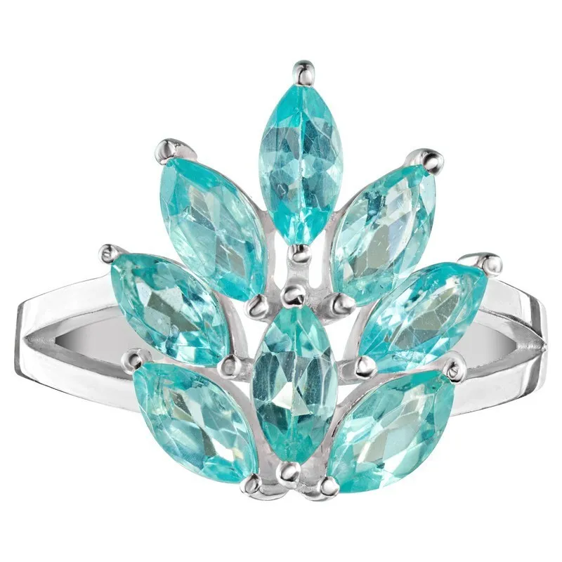 Серебряное кольцо с натуральным апатитом - коллекция Искра. Средний вес изделия с камнями 3.21 гр. Месторождение: Апатит (Мадагаскар). Апатит (Натуральный) маркиз 3*6 мм., средний вес: 0.27 карат. Все изделия собственного производства, гарантия 12 месяцев. Арт. 8375. Апатит — минерал, напоминающий при огранке топаз. Имеет фосфатную природу. Сам по себе бесцветен, но примеси придают ему множество оттенков. Считается, что он приносит владельцу успокоение, умиротворение, то есть стабилизирует нервную систему и благотворно влияет на психическое и эмоциональное состояния.