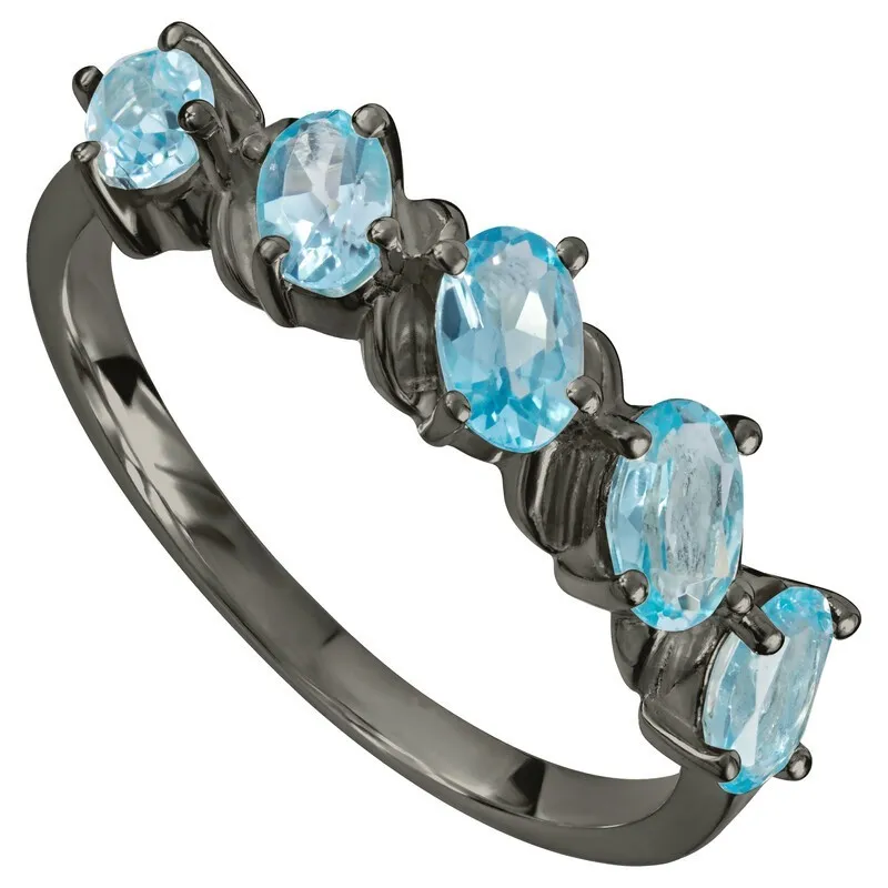 Серебряное кольцо с натуральным апатитом - коллекция Колосок, покрытие Черный Родий.