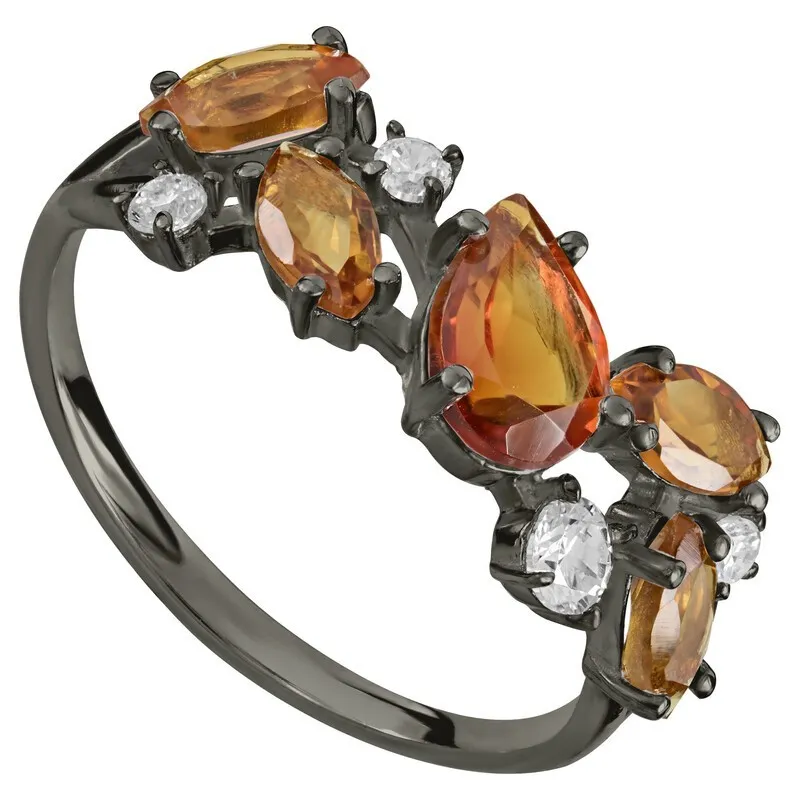Серебряное кольцо с натуральным цитрином (мадейра) - коллекция Росинка, покрытие Черный Родий.
