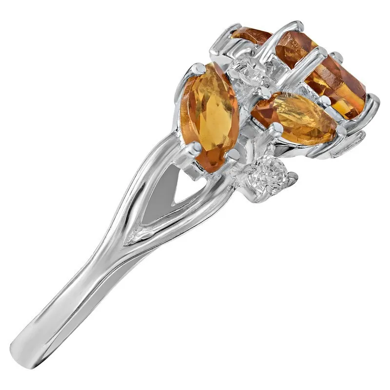 Серебряное кольцо с натуральным цитрином (мадейра) - коллекция Росинка. Средний вес украшения с камнями 2.42 гр. Месторождение: Цитрин (Урал, Россия). Цитрин (Натуральный) груша 5*7 мм., средний вес: 0.61 карат. Цитрин (Натуральный) маркиз 3*6 мм., средний вес: 0.25 карат.