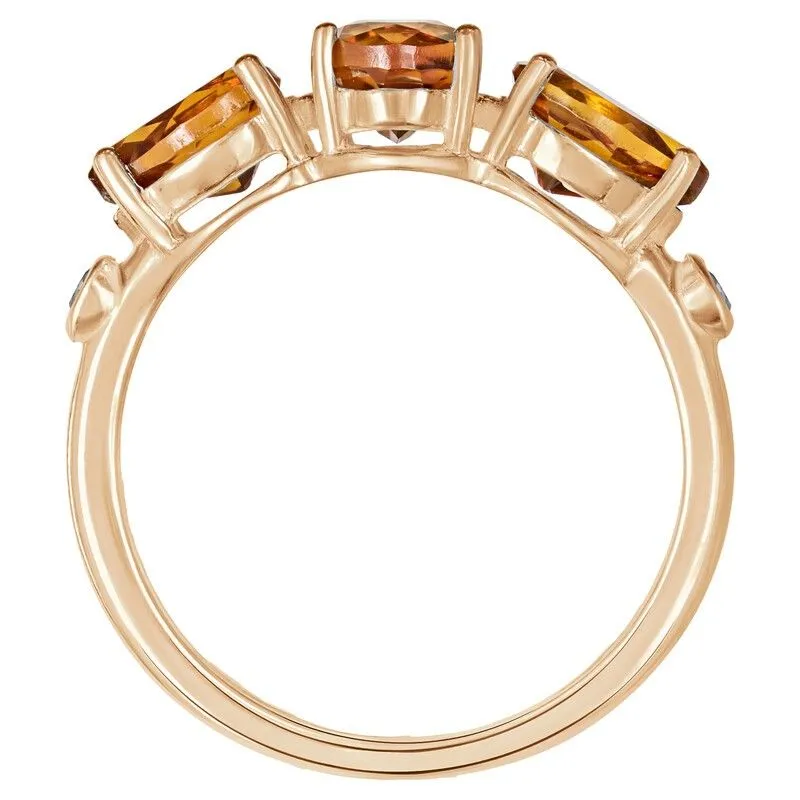 Серебряное кольцо с натуральным цитрином (мадейра) - коллекция Сансара / покрытие Розовое Золото.Средний вес украшения с камнями 2.2 гр.Месторождение(я): Цитрин (Урал, Россия).Ювелирные вставки:Цитрин (Натуральный) овал 5*7 мм., средний вес: 0.73 карат.Цитрин (Натуральный) груша 5*7 мм., средний вес: 0.61 карат.Белый Нанокристалл круг 2 мм., средний вес: 0.06 карат.Все изделия собственного производства и имеют гарантию 12 месяцев. Арт. 8640PG. Цитрин – камень, который активно использовался для инкрустации. С его помощью излечивали заболевания желудочно-кишечного тракта, он становился амулетом, приносящим удачу. Золотисто-жёлтый камень известен и любим очень давно за ряд своих положительных качеств.