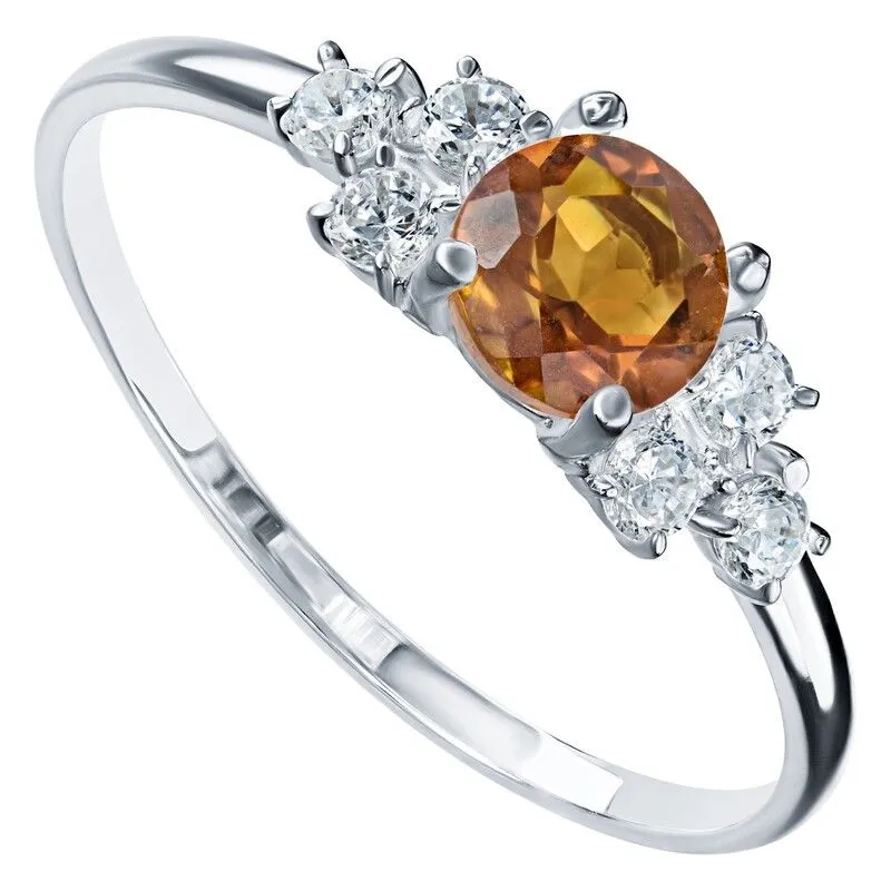 Серебряное кольцо с натуральным цитрином (мадейра) - коллекция Нова / покрытие Чистое Серебро.Средний вес украшения с камнями 1.25 гр.Месторождение(я): Цитрин (Урал, Россия).Ювелирные вставки:Цитрин (Натуральный) круг 5 мм., средний вес: 0.48 карат.Белый Нанокристалл круг 2 мм., средний вес: 0.06 карат.Все изделия собственного производства и имеют гарантию 12 месяцев. Арт. 8656AG. Цитрин – камень, который активно использовался для инкрустации. С его помощью излечивали заболевания желудочно-кишечного тракта, он становился амулетом, приносящим удачу. Золотисто-жёлтый камень известен и любим очень давно за ряд своих положительных качеств.