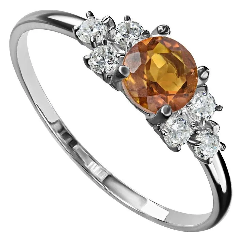 Серебряное кольцо с натуральным цитрином (мадейра) - коллекция Нова / покрытие Палладий.Средний вес украшения с камнями 1.3 гр.Месторождение(я): Цитрин (Урал, Россия).Ювелирные вставки:Цитрин (Натуральный) круг 5 мм., средний вес: 0.48 карат.Белый Нанокристалл круг 2 мм., средний вес: 0.06 карат.Все изделия собственного производства и имеют гарантию 12 месяцев. Арт. 8656PD. Цитрин – камень, который активно использовался для инкрустации. С его помощью излечивали заболевания желудочно-кишечного тракта, он становился амулетом, приносящим удачу. Золотисто-жёлтый камень известен и любим очень давно за ряд своих положительных качеств.