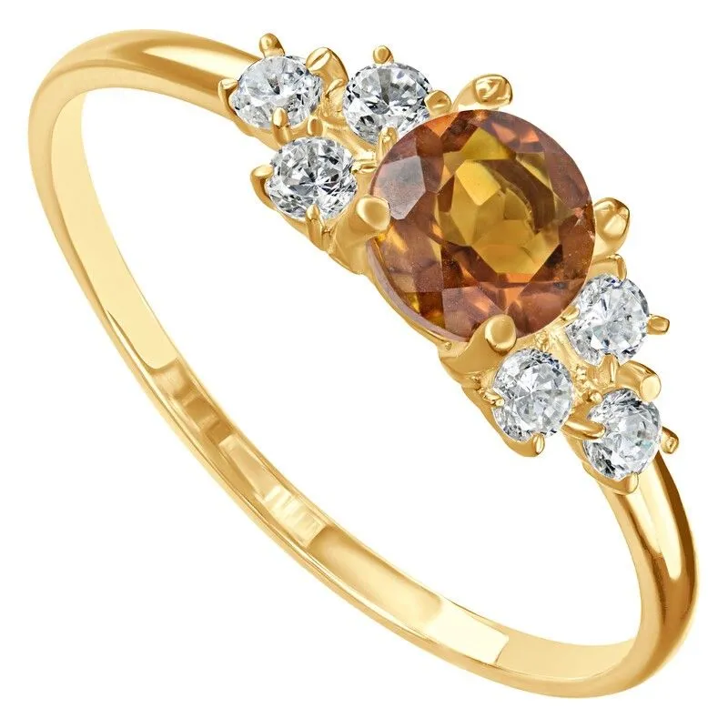 Серебряное кольцо с натуральным цитрином (мадейра) - коллекция Нова / покрытие Желтое Золото.Средний вес украшения с камнями 1.27 гр.Месторождение(я): Цитрин (Урал, Россия).Ювелирные вставки:Цитрин (Натуральный) круг 5 мм., средний вес: 0.48 карат.Белый Нанокристалл круг 2 мм., средний вес: 0.06 карат.Все изделия собственного производства и имеют гарантию 12 месяцев. Арт. 8656YG. Цитрин – камень, который активно использовался для инкрустации. С его помощью излечивали заболевания желудочно-кишечного тракта, он становился амулетом, приносящим удачу. Золотисто-жёлтый камень известен и любим очень давно за ряд своих положительных качеств.