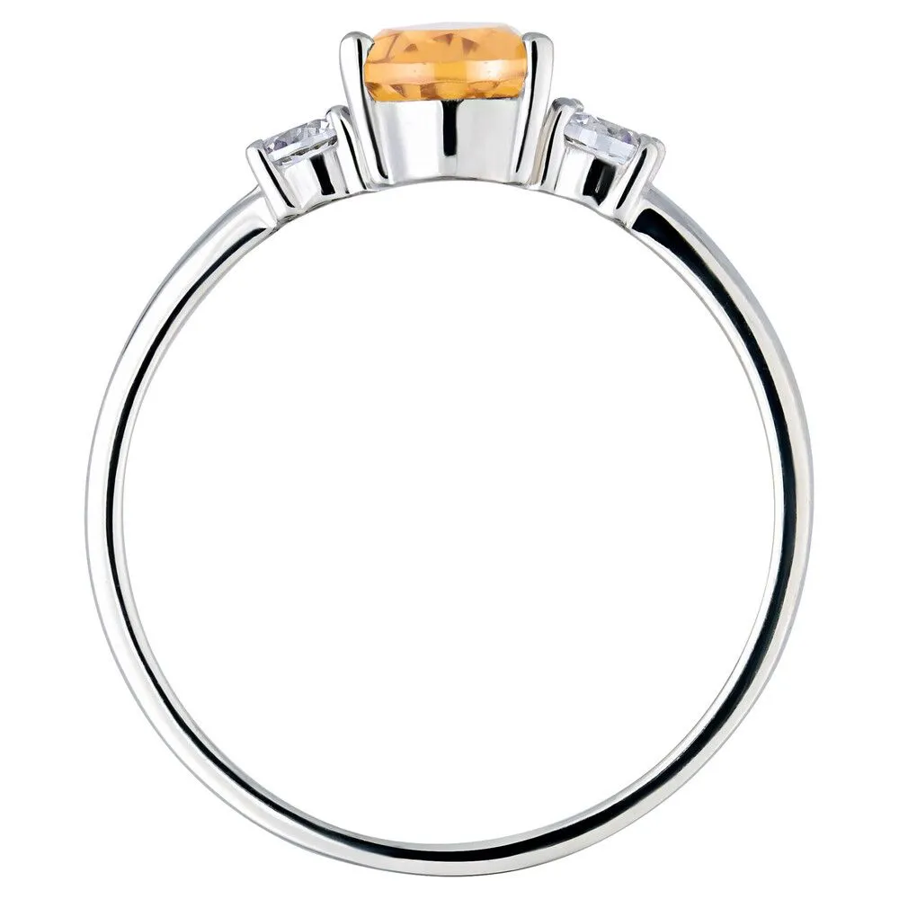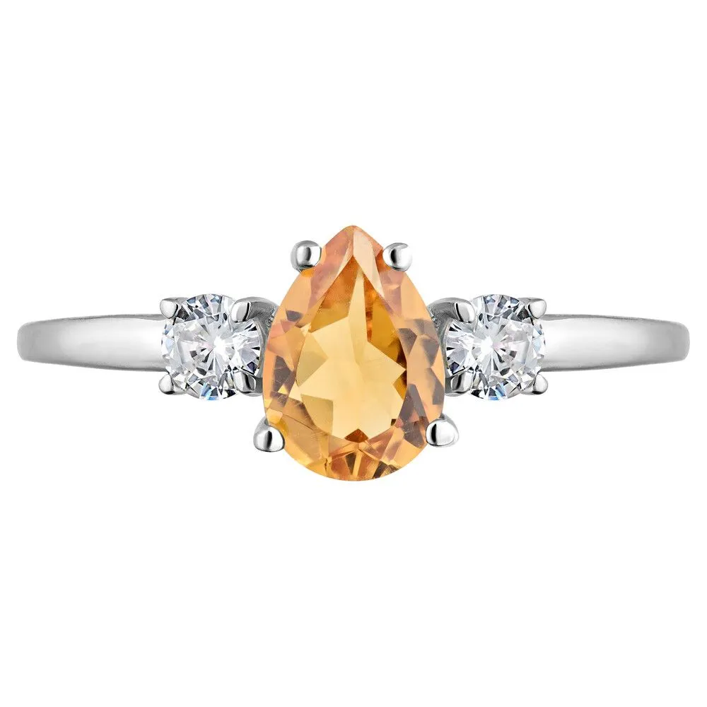 Серебряное кольцо с натуральным цитрином - коллекция Алсу (малая) / Без покрытия. Средний вес украшения с камнями 1.35 гр. Месторождение: Цитрин (Замбия, Восточная Африка). Ювелирные вставки: Цитрин (Натуральный) груша 5*7 мм., средний вес: 0.6 карат. Белый Нанокристалл круг 3 мм. Все изделия собственного производства и имеют гарантию 12 месяцев, к каждому изделию прилагается паспорт. Арт. 8807NP