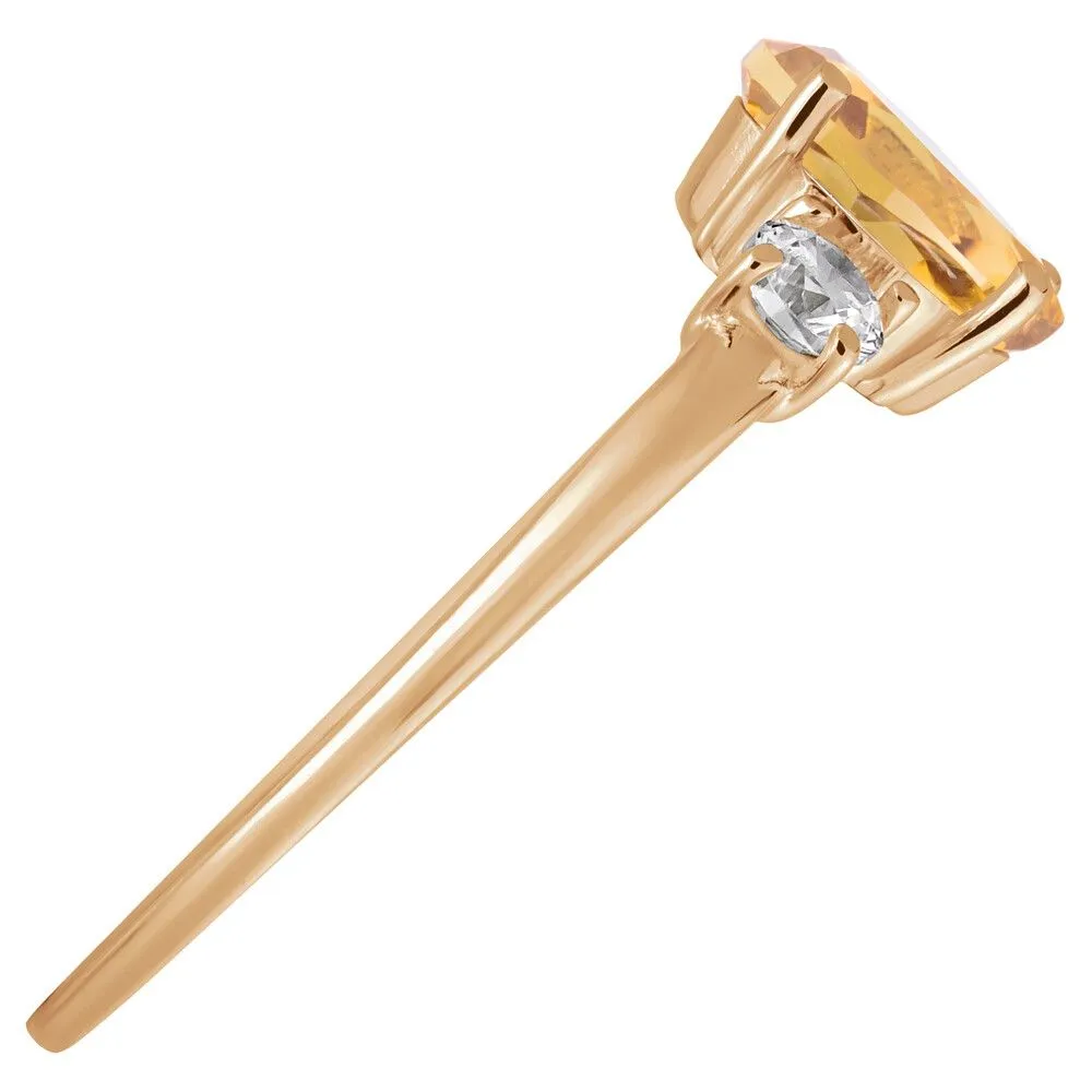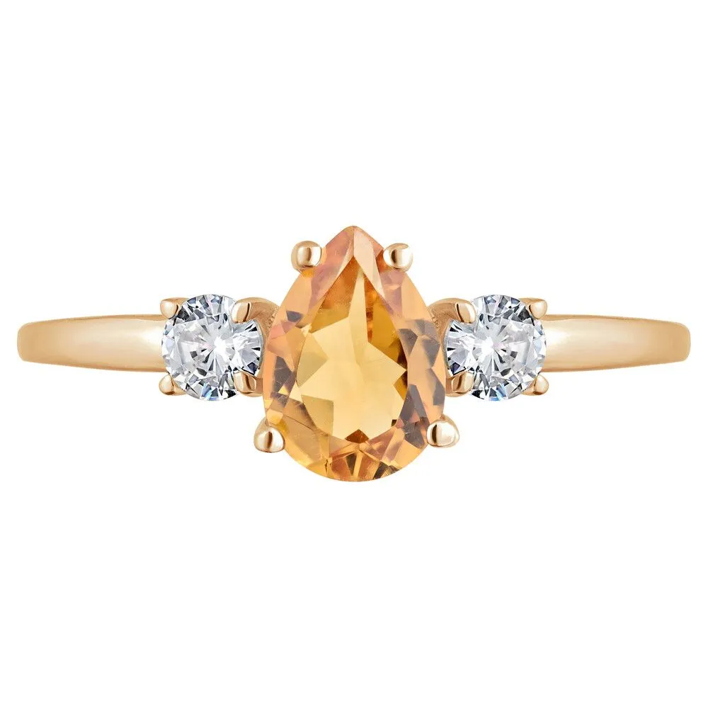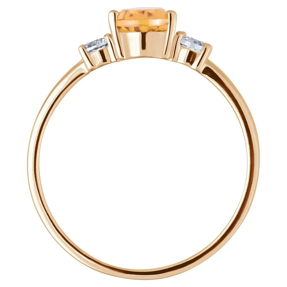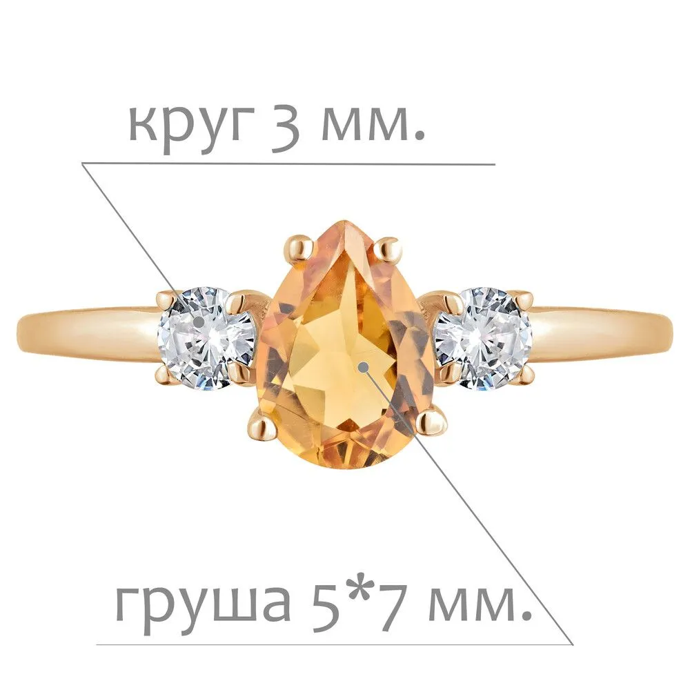 Серебряное кольцо с натуральным цитрином - коллекция Алсу (малая) / Розовое Золото. Средний вес украшения с камнями 1.35 гр. Месторождение: Цитрин (Замбия, Восточная Африка). Ювелирные вставки: Цитрин (Натуральный) груша 5*7 мм., средний вес: 0.6 карат. Белый Нанокристалл круг 3 мм. Все изделия собственного производства и имеют гарантию 12 месяцев, к каждому изделию прилагается паспорт. Арт. 8807PG