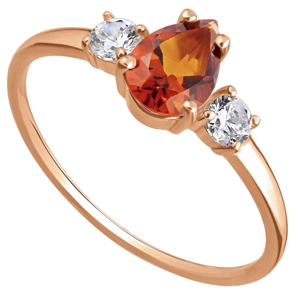 Серебряное кольцо с натуральным цитрином (мадейра) - коллекция Алсу (малая) / Красное Золото. Средний вес украшения с камнями 1.35 гр. Месторождение: Цитрин (Замбия, Восточная Африка). Ювелирные вставки: Цитрин (Натуральный) груша 5*7 мм., средний вес: 0.6 карат. Белый Нанокристалл круг 3 мм. Все изделия собственного производства и имеют гарантию 12 месяцев, к каждому изделию прилагается паспорт. Арт. 8808RG
