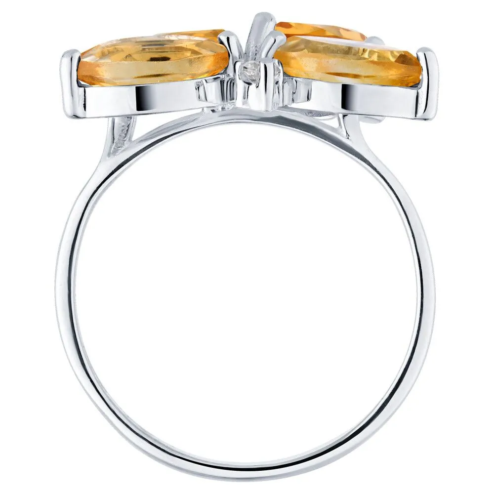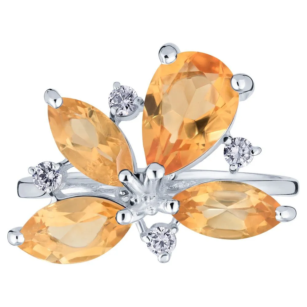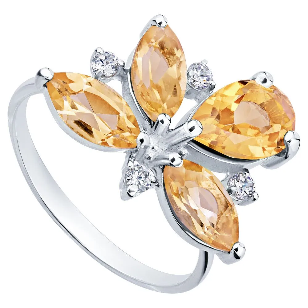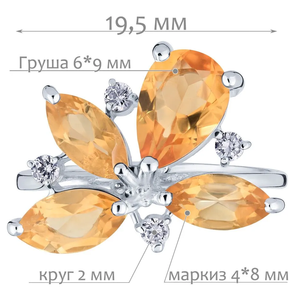 Серебряное кольцо с натуральным цитрином - коллекция Аврора / Чистое Серебро. Средний вес украшения с камнями 3.18 гр. Месторождение: Цитрин (Замбия, Восточная Африка). Ювелирные вставки: Цитрин (Натуральный) груша 6*9 мм., средний вес: 1.14 карат. Цитрин (Натуральный) маркиз 4*8 мм., средний вес: 0.53 карат. Белый Нанокристалл круг 2 мм. Все изделия собственного производства и имеют гарантию 12 месяцев, к каждому изделию прилагается паспорт. Арт. 8907AG