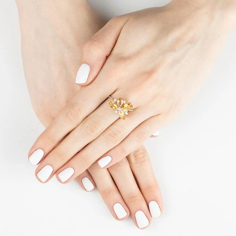 Серебряное кольцо с натуральным цитрином - коллекция Аврора / Без покрытия. Средний вес украшения с камнями 3.18 гр. Месторождение: Цитрин (Замбия, Восточная Африка). Ювелирные вставки: Цитрин (Натуральный) груша 6*9 мм., средний вес: 1.14 карат. Цитрин (Натуральный) маркиз 4*8 мм., средний вес: 0.53 карат. Белый Нанокристалл круг 2 мм. Все изделия собственного производства и имеют гарантию 12 месяцев, к каждому изделию прилагается паспорт. Арт. 8907NP