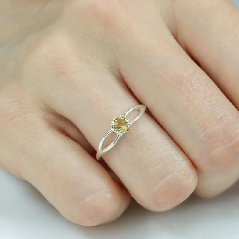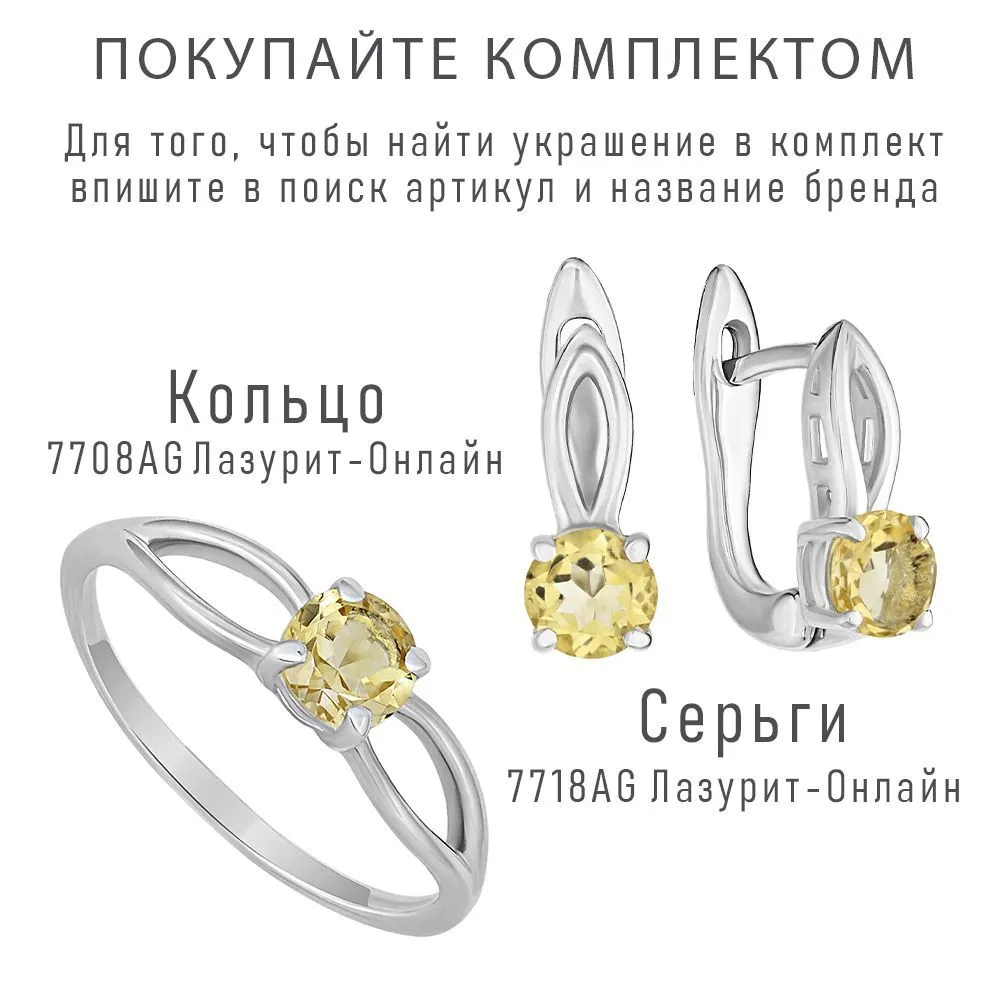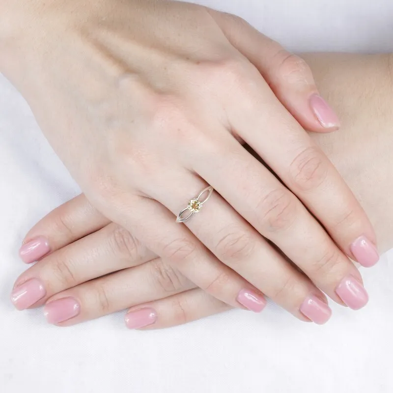 Серебряное кольцо с натуральным цитрином - коллекция Мона / покрытие Чистое Серебро