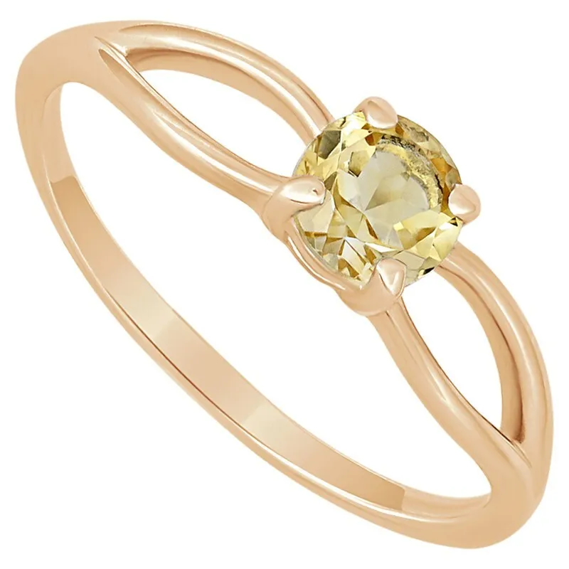 Серебряное кольцо с натуральным цитрином - коллекция Мона. Серебряное кольцо 925 пробы с покрытием розовое золото. Цвет покрытия соответствует швейцарскому цветовому стандарту NIHS -4N и цвету розового золота 585 в России. На последней фотографии мы разместили сравнительную фотографию 3 цвета золотого покрытия. Помимо предания золотого цвета Вашему изделию, тонкий слой золота защищает от окисления. Для более стойкого эффекта золочения и долговечности покрытия мы дополнительно наносим подслой палладия (Pd). Средний вес изделия с камнем составляет 1.61 гр. Месторождение(я): Цитрин (Урал, Россия). Цитрин (Натуральный) круг 5 мм., средний вес: 0.55 карат. Все изделия собственного производства, гарантия 12 месяцев. Арт. 7708. Цитрин – камень, который активно использовался для инкрустации. С его помощью излечивали заболевания желудочно-кишечного тракта, он становился амулетом, приносящим удачу. Золотисто-жёлтый камень известен и любим очень давно за ряд своих положительных качеств.