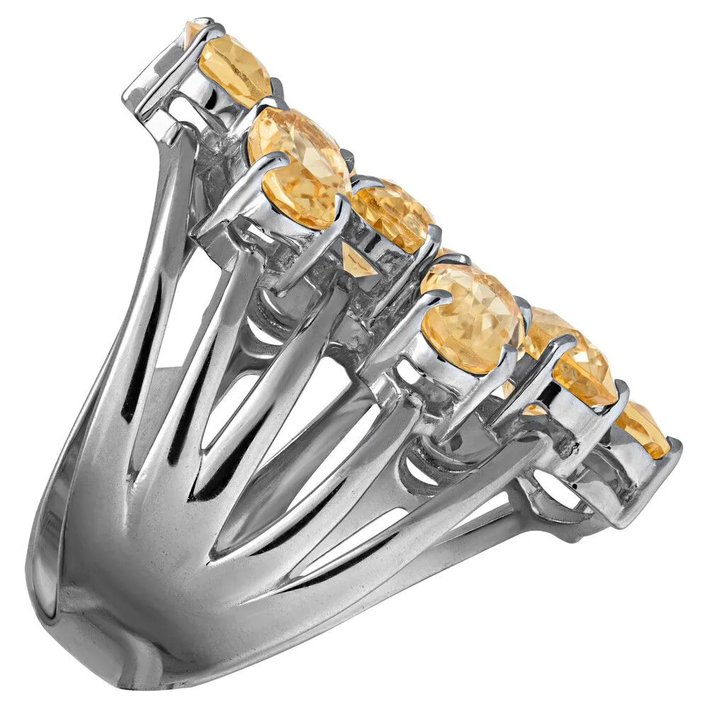 Серебряное кольцо с натуральным цитрином - коллекция Аэлита / Палладий. Средний вес украшения с камнями 9.83 гр. Месторождение: Цитрин (Урал, Россия). Ювелирные вставки: Цитрин (Натуральный) овал 5*7 мм., средний вес: 0.65 карат. Все изделия собственного производства и имеют гарантию 12 месяцев, к каждому изделию прилагается паспорт. Арт. 7843PD