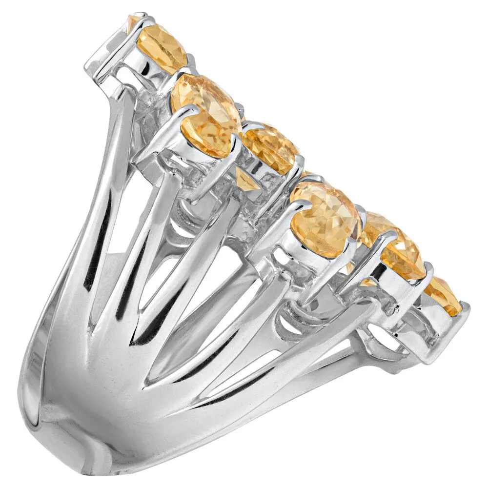 Серебряное кольцо с натуральным цитрином - коллекция Аэлита / Белый Родий. Средний вес украшения с камнями 9.83 гр. Месторождение: Цитрин (Урал, Россия). Ювелирные вставки: Цитрин (Натуральный) овал 5*7 мм., средний вес: 0.65 карат. Все изделия собственного производства и имеют гарантию 12 месяцев, к каждому изделию прилагается паспорт. Арт. 7843WR