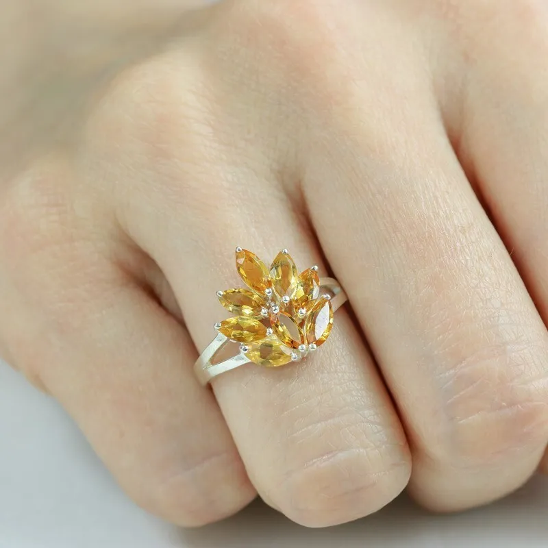 Серебряное кольцо с натуральным цитрином - коллекция Искра. Средний вес изделия с камнями 2.88 гр. Месторождение: Цитрин (Урал, Россия). Цитрин (Натуральный) маркиз 3*6 мм., средний вес: 0.25 карат. Все изделия собственного производства, гарантия 12 месяцев. Арт. 8070