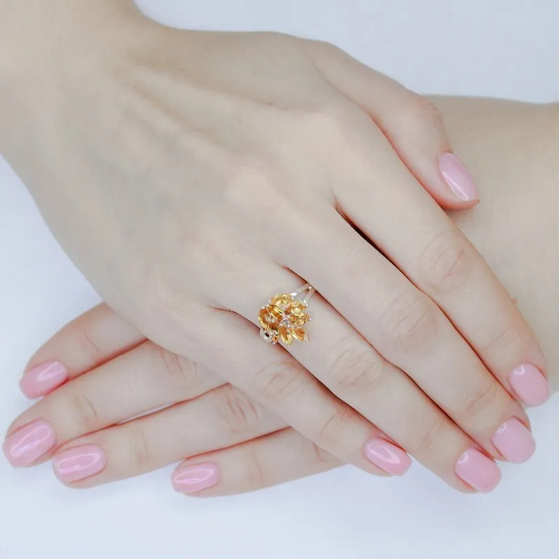Серебряное кольцо с натуральным цитрином - коллекция Искра / покрытие Белый Родий