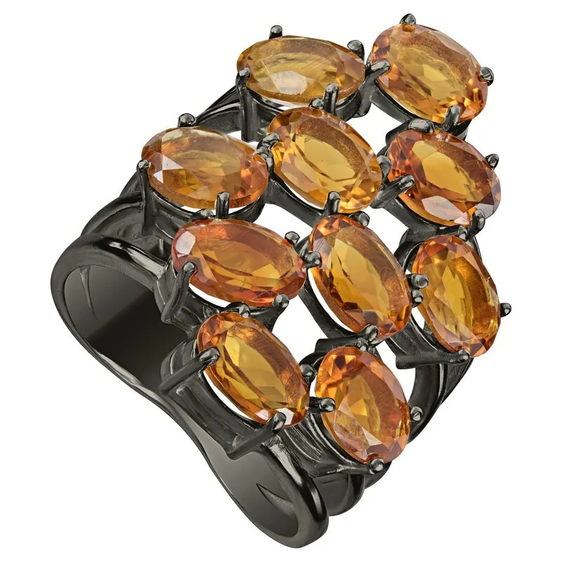 Серебряное кольцо с натуральным цитрином (мадейра) - коллекция Аэлита, покрытие Черный Родий.