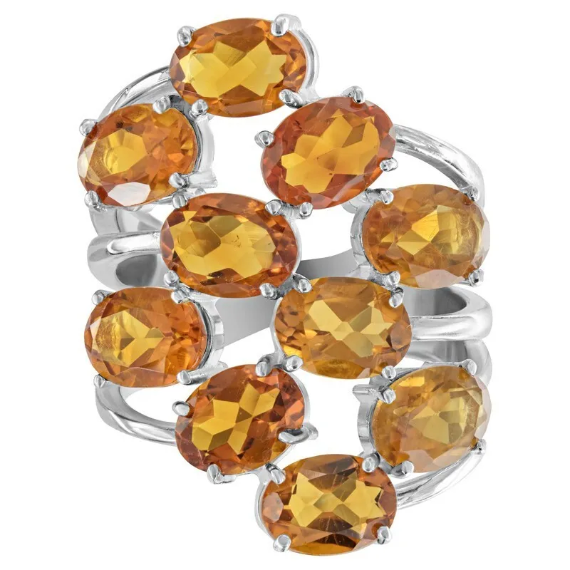 Серебряное кольцо с натуральным цитрином (мадейра) - коллекция Аэлита / покрытие Палладий