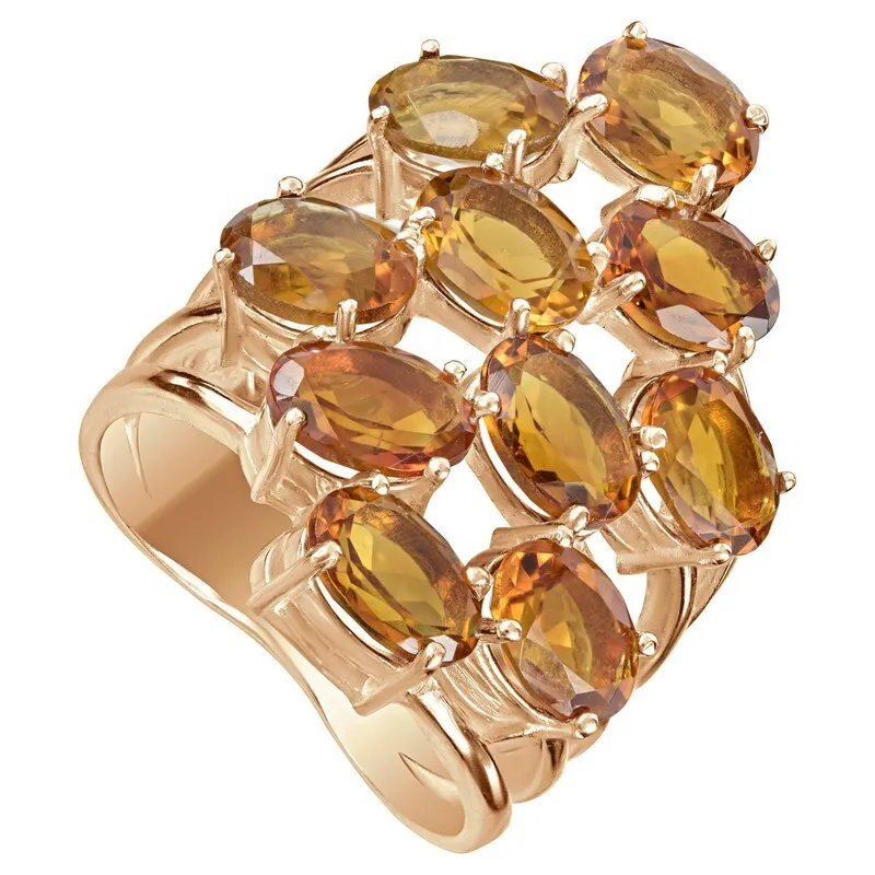 Серебряное кольцо с натуральным цитрином (мадейра) - коллекция Аэлита / покрытие Розовое Золото