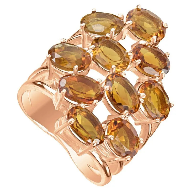 Серебряное кольцо с натуральным цитрином (мадейра) - коллекция Аэлита / покрытие Красное Золото