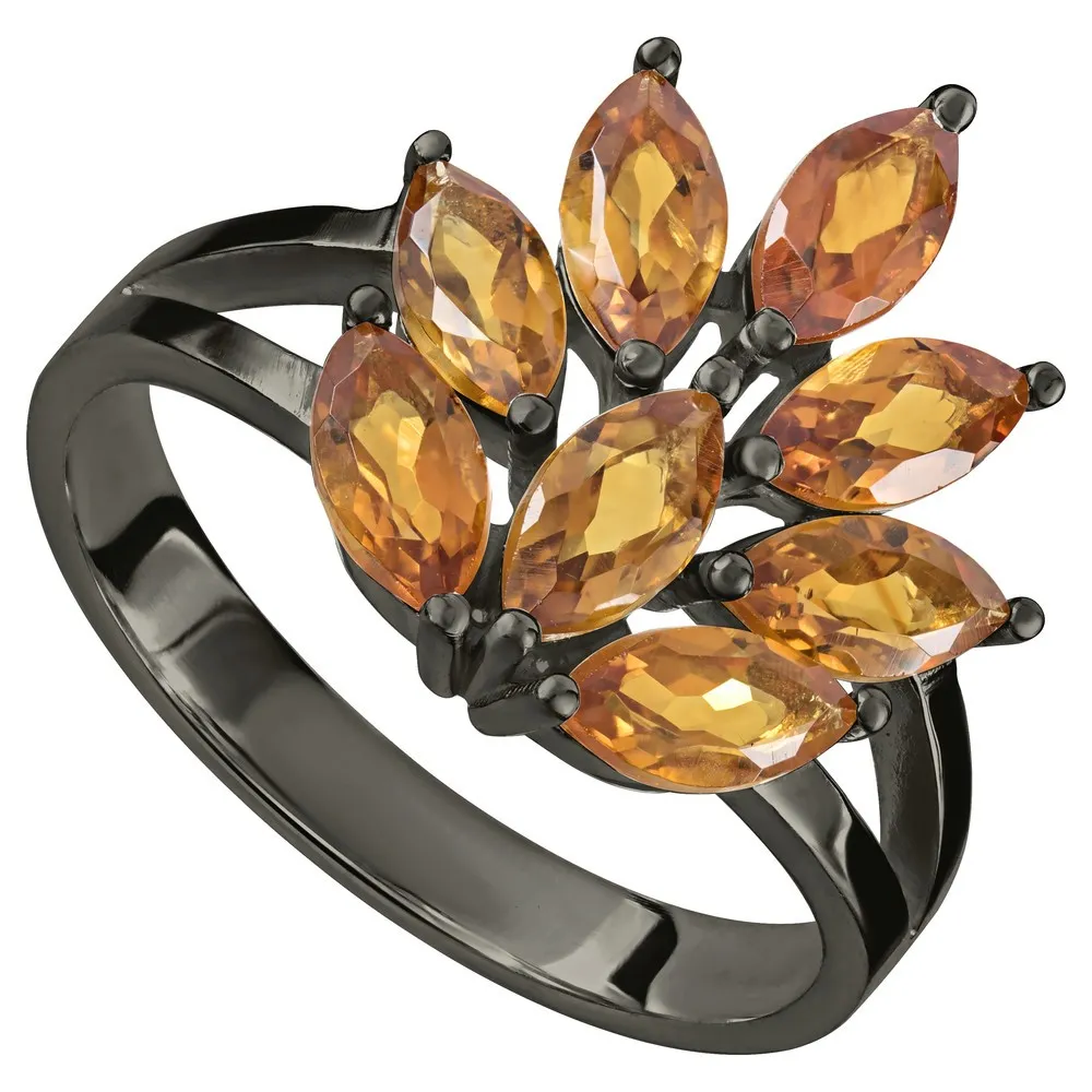 Серебряное кольцо с натуральным цитрином (мадейра) - коллекция Искра, покрытие Черный Родий.