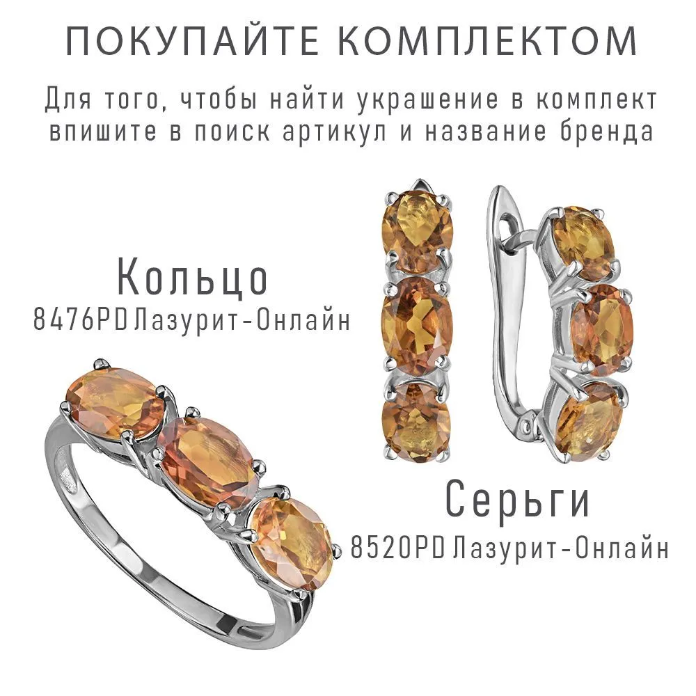 Серебряное кольцо с натуральным цитрином (мадейра) - коллекция Муза / покрытие Палладий