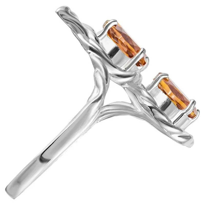 Серебряное кольцо с натуральным цитрином (мадейра) - коллекция Ривьера / покрытие Белый Родий