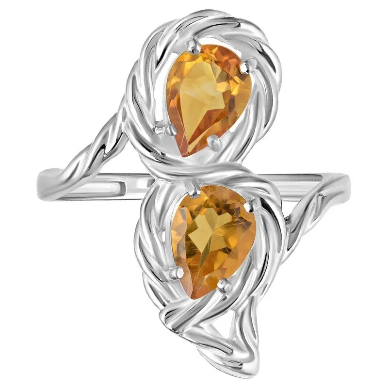Серебряное кольцо с натуральным цитрином - коллекция Ривьера / покрытие Белый Родий