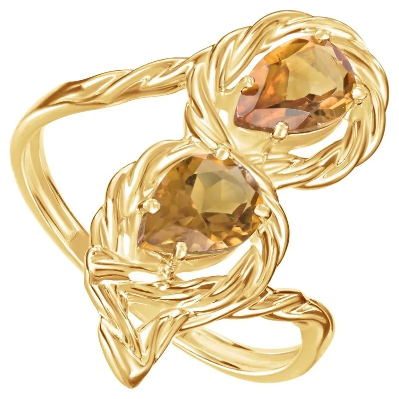 Серебряное кольцо с натуральным цитрином - коллекция Ривьера / покрытие Желтое Золото