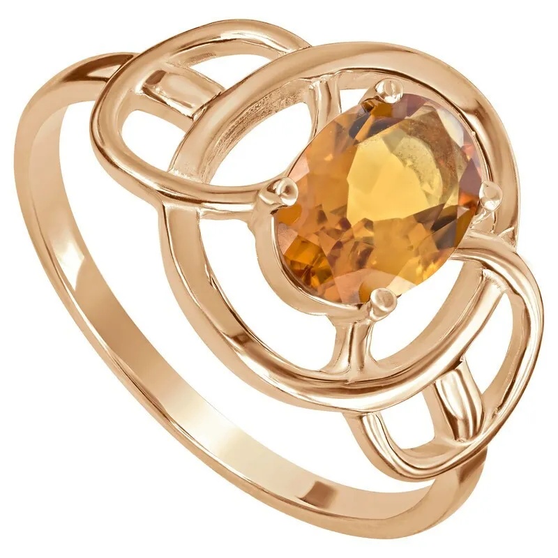 Серебряное кольцо с натуральным цитрином (мадейра) - коллекция Юнона / покрытие Розовое Золото