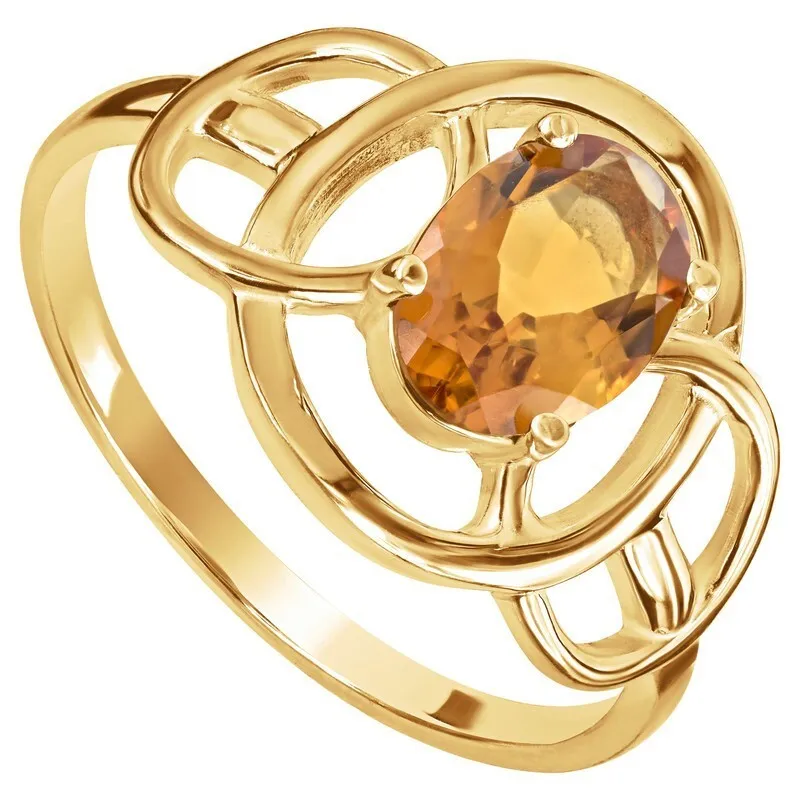Серебряное кольцо с натуральным цитрином (мадейра) - коллекция Юнона / покрытие Желтое Золото
