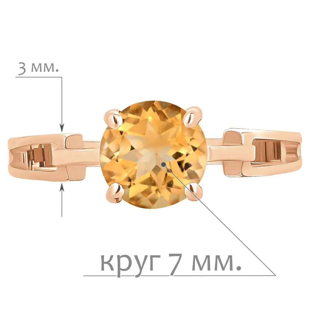 Серебряное кольцо с натуральным цитрином - коллекция Классик / Красное Золото. Средний вес украшения с камнями 1.84 гр. Месторождение: Цитрин (Замбия, Восточная Африка). Ювелирные вставки: Цитрин (Натуральный) круг 7 мм., средний вес: 1.2 карат. Все изделия собственного производства и имеют гарантию 12 месяцев, к каждому изделию прилагается паспорт. Арт. 8885RG