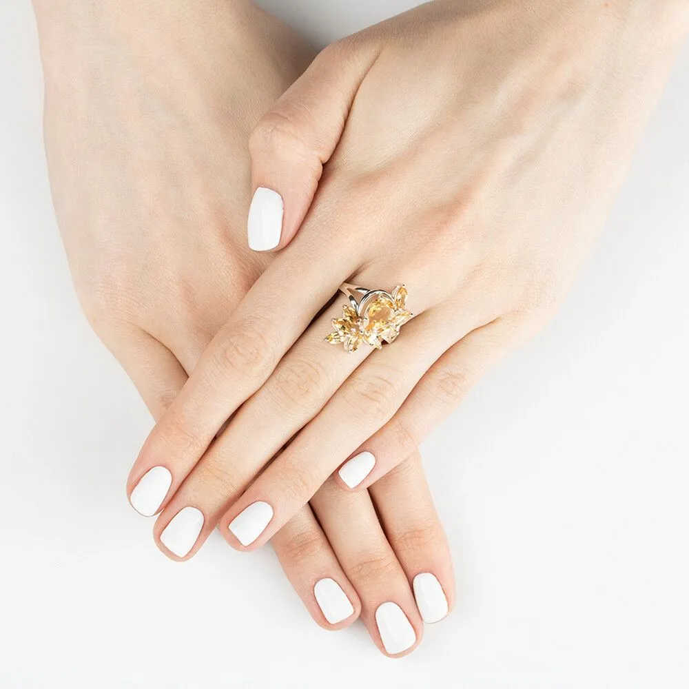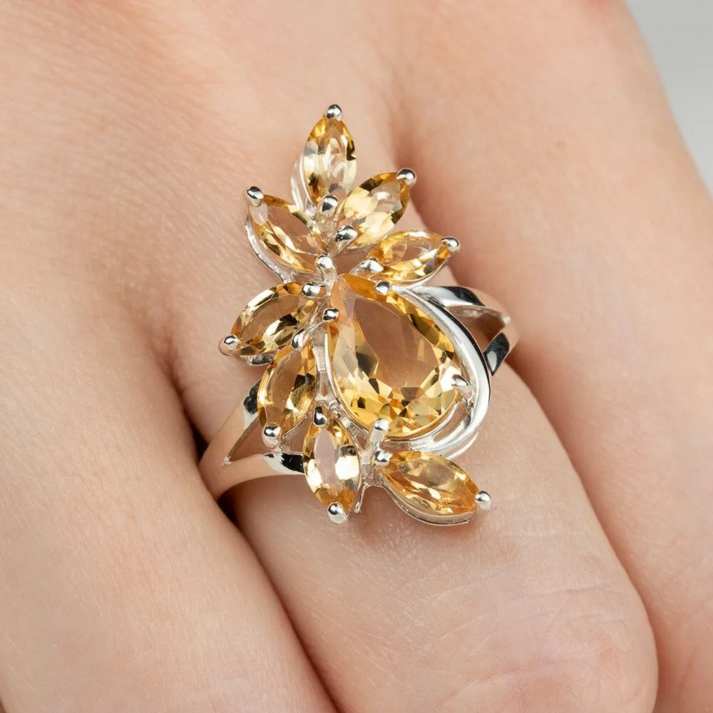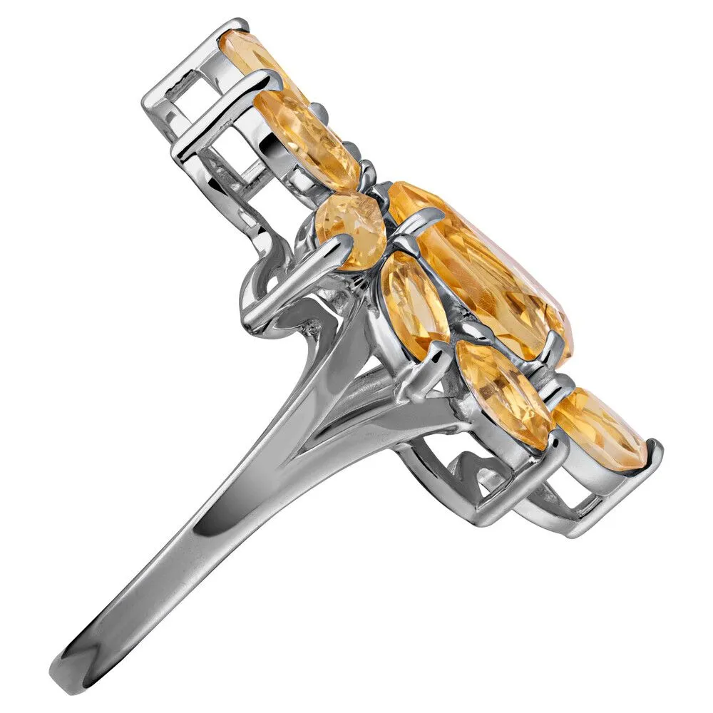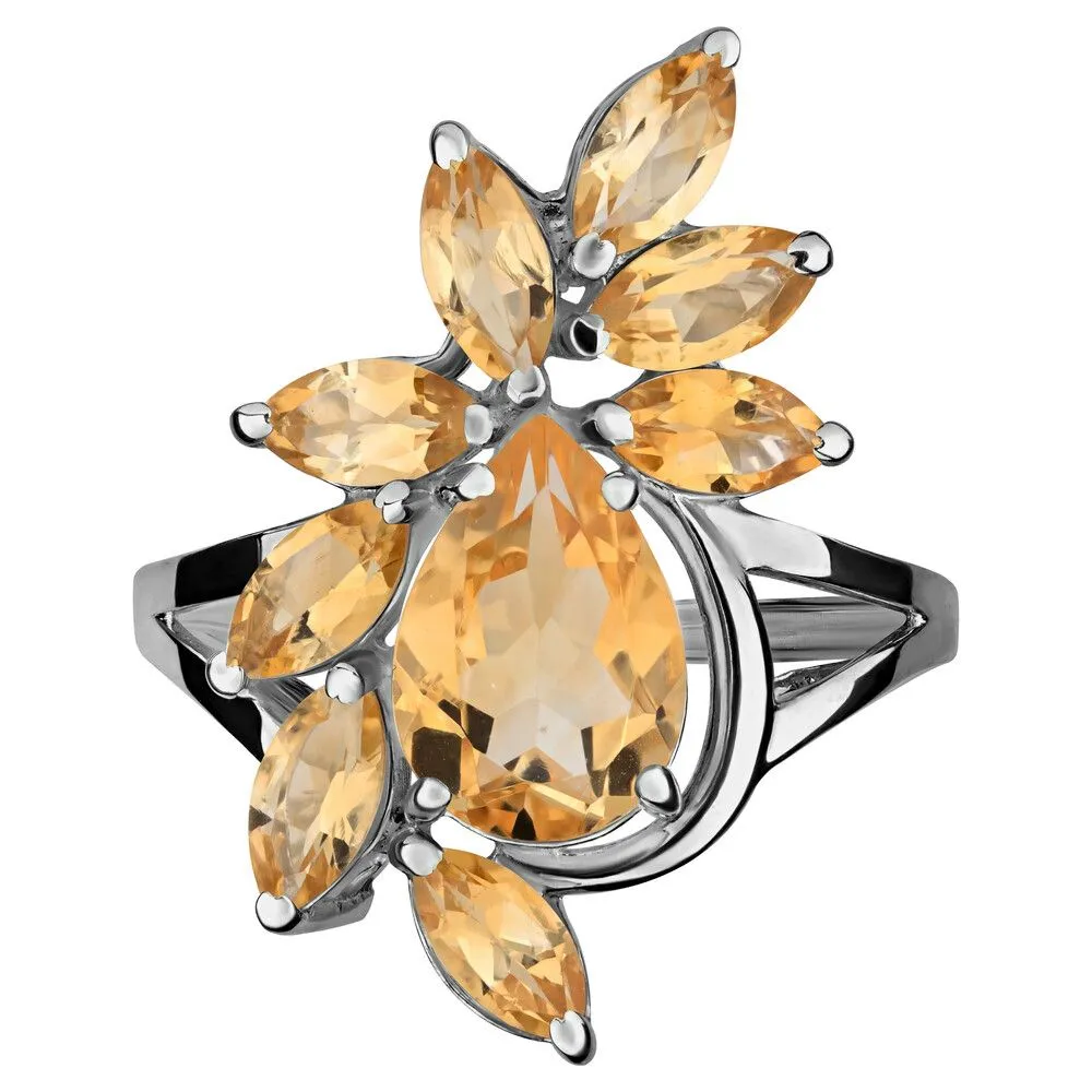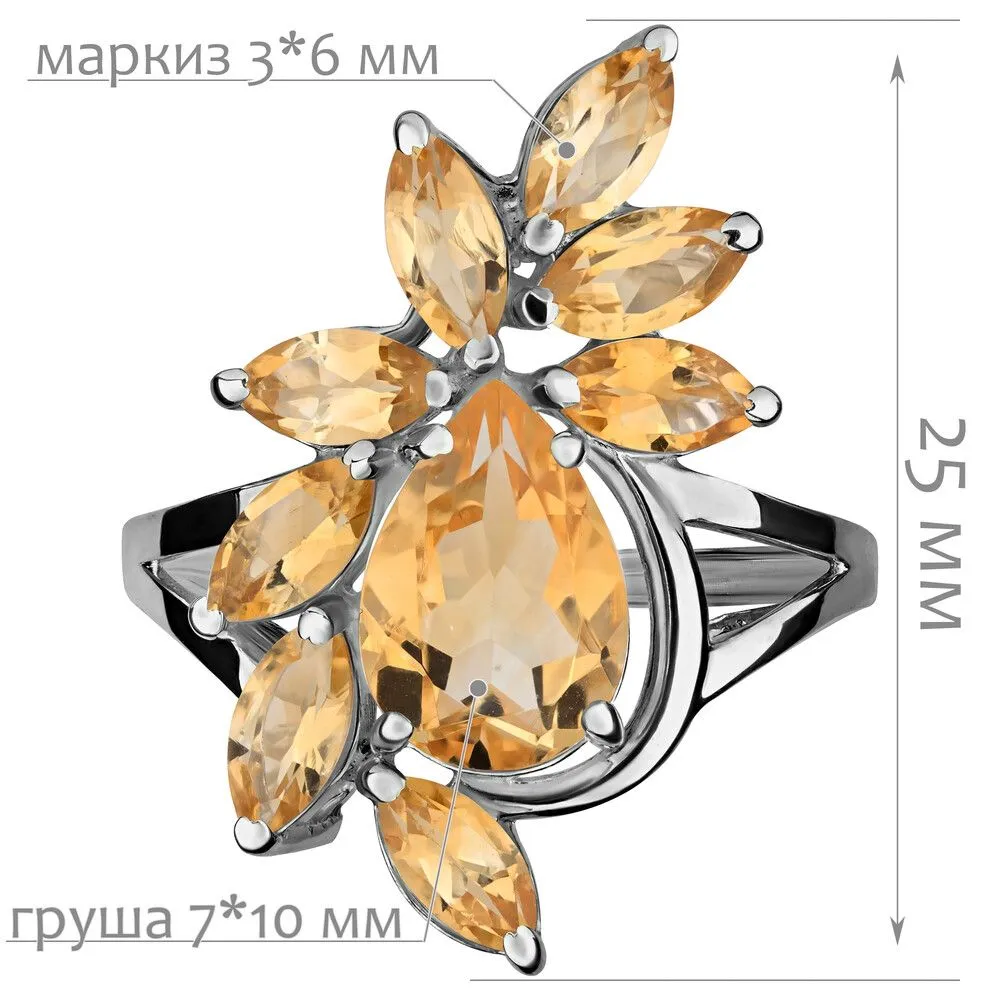 Серебряное кольцо с натуральным цитрином - коллекция Элегия / Палладий. Средний вес украшения с камнями 4.34 гр. Месторождение: Цитрин (Замбия, Восточная Африка). Ювелирные вставки: Цитрин (Натуральный) груша 7*10 мм., средний вес: 1.69 карат. Цитрин (Натуральный) маркиз 3*6 мм., средний вес: 0.22 карат. Все изделия собственного производства и имеют гарантию 12 месяцев, к каждому изделию прилагается паспорт. Арт. 8925PD