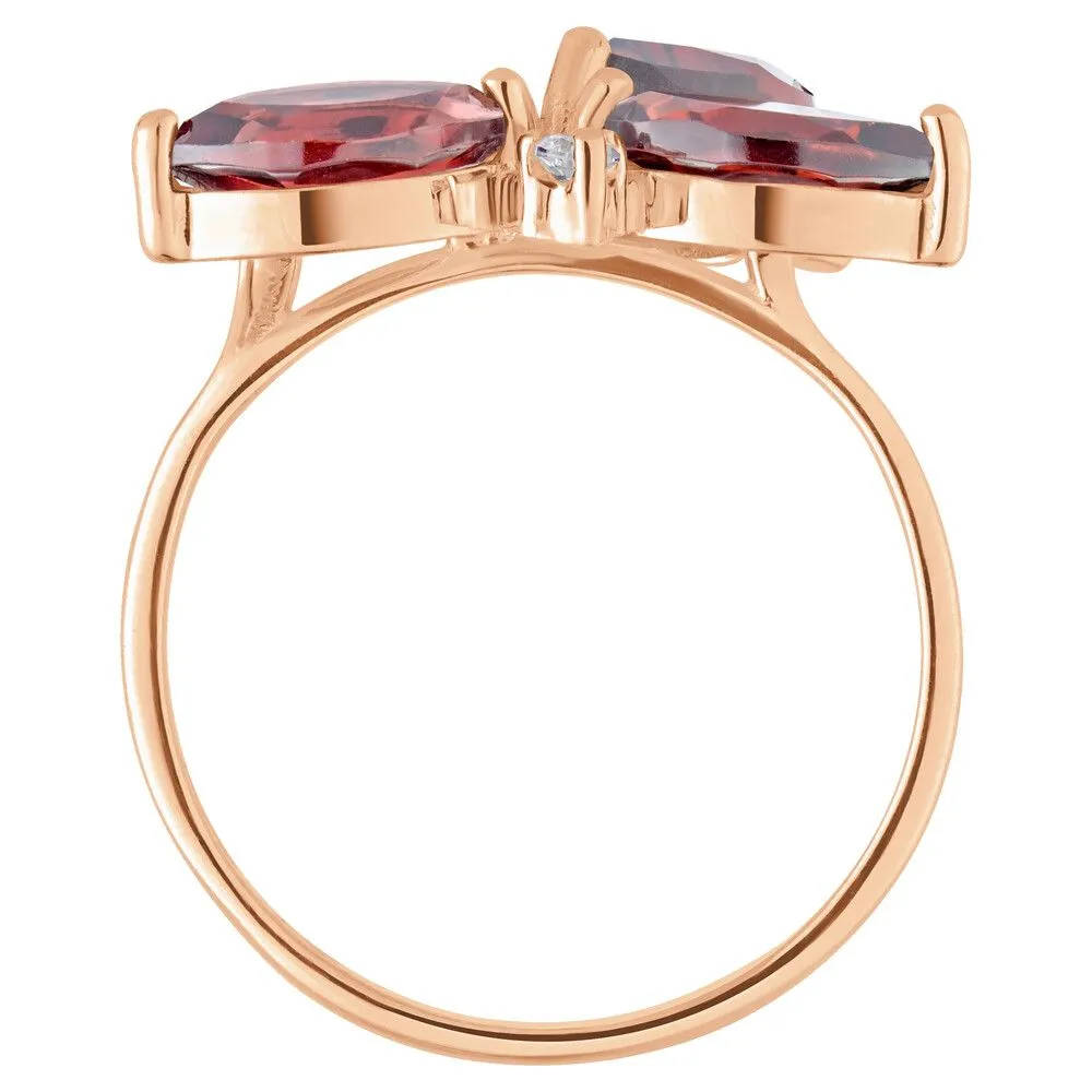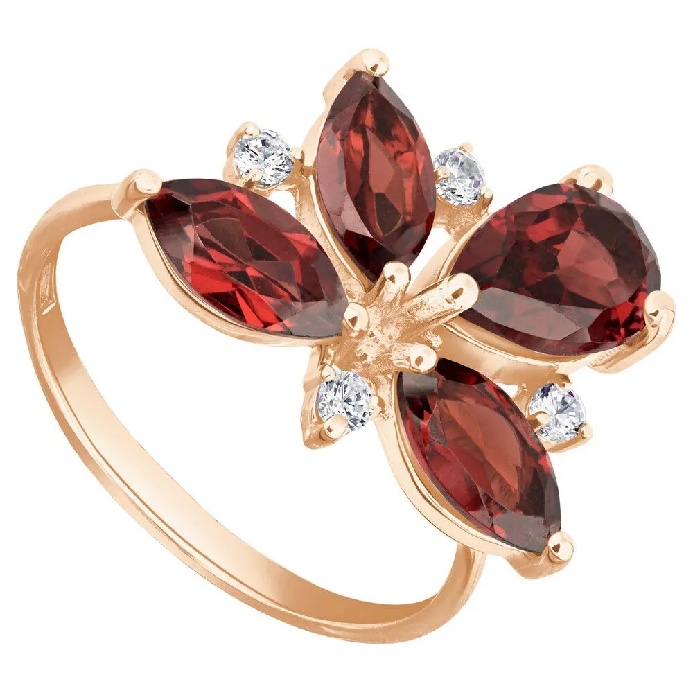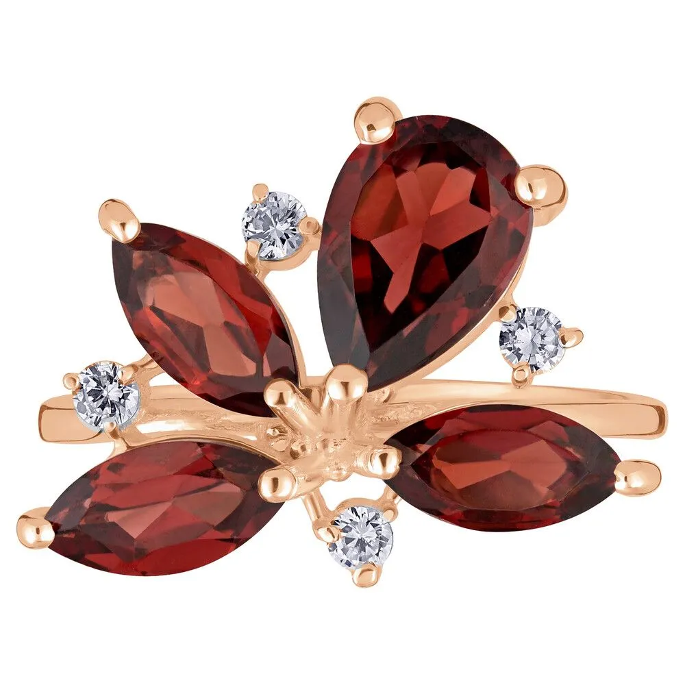 Серебряное кольцо с натуральным гранатом - коллекция Аврора / Красное Золото. Средний вес украшения с камнями 3.48 гр. Месторождение: Гранат (Кольский п-ов, Россия). Ювелирные вставки: Гранат (Натуральный) груша 6*9 мм., средний вес: 1.45 карат. Гранат (Натуральный) маркиз 4*8 мм., средний вес: 0.61 карат. Белый Нанокристалл круг 2 мм. Все изделия собственного производства и имеют гарантию 12 месяцев, к каждому изделию прилагается паспорт. Арт. 6622RG