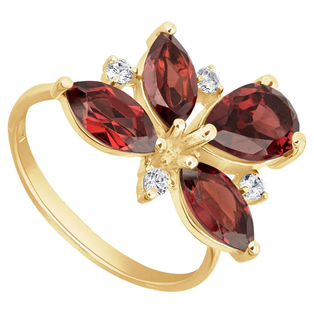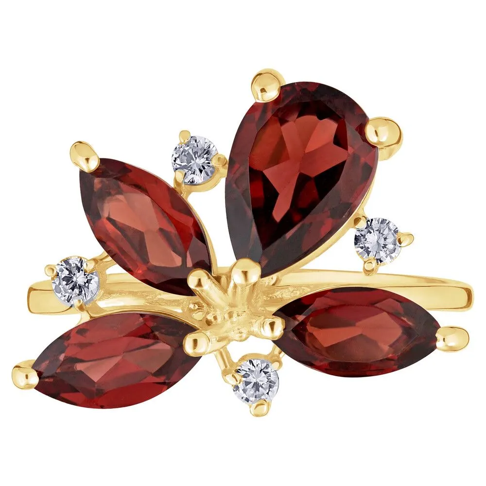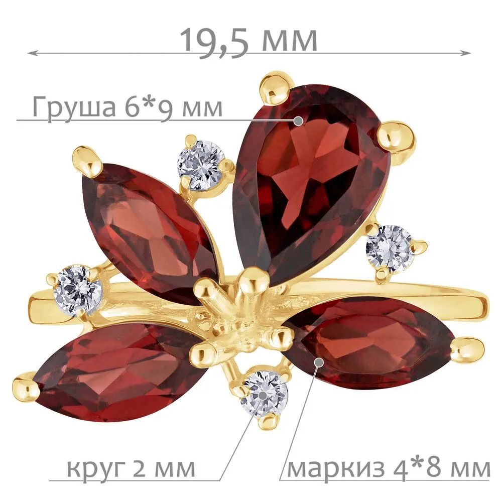 Серебряное кольцо с натуральным гранатом - коллекция Аврора / Желтое Золото. Средний вес украшения с камнями 3.48 гр. Месторождение: Гранат (Кольский п-ов, Россия). Ювелирные вставки: Гранат (Натуральный) груша 6*9 мм., средний вес: 1.45 карат. Гранат (Натуральный) маркиз 4*8 мм., средний вес: 0.61 карат. Белый Нанокристалл круг 2 мм. Все изделия собственного производства и имеют гарантию 12 месяцев, к каждому изделию прилагается паспорт. Арт. 6622YG
