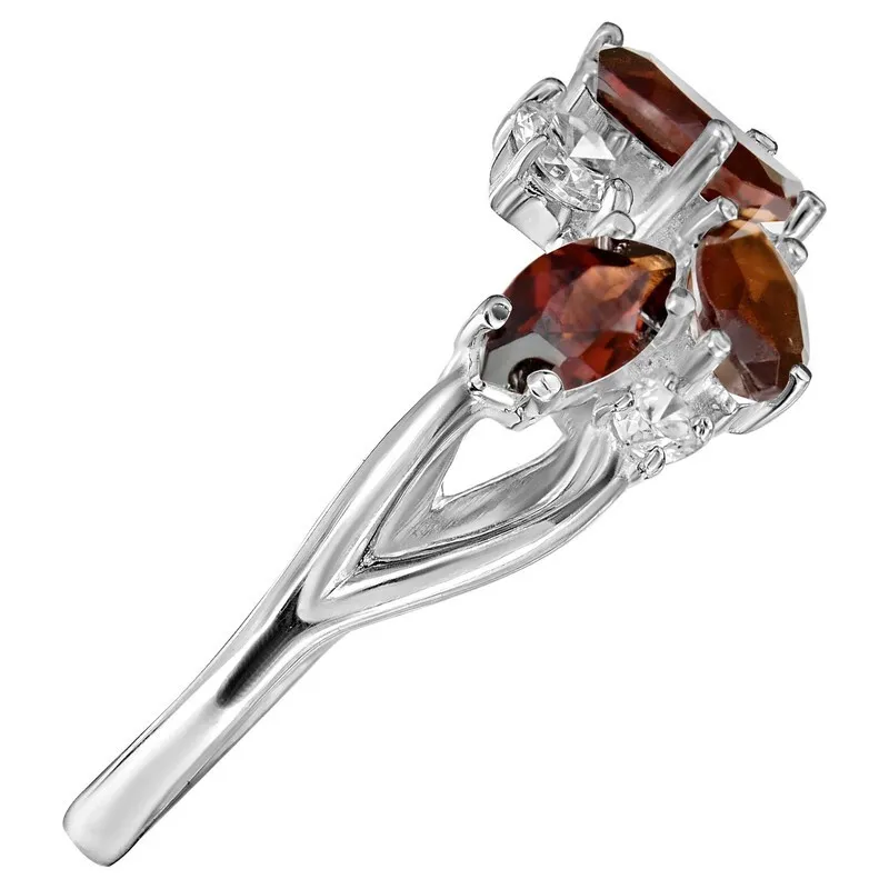 Серебряное кольцо с натуральным гранатом - коллекция Росинка / покрытие Чистое Серебро