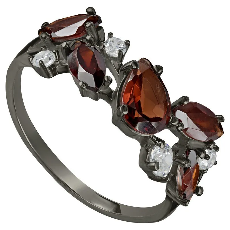 Серебряное кольцо с натуральным гранатом - коллекция Росинка, покрытие Черный Родий.