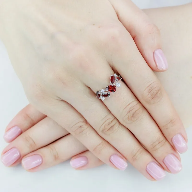 Серебряное кольцо с натуральным гранатом - коллекция Росинка / Без покрытия