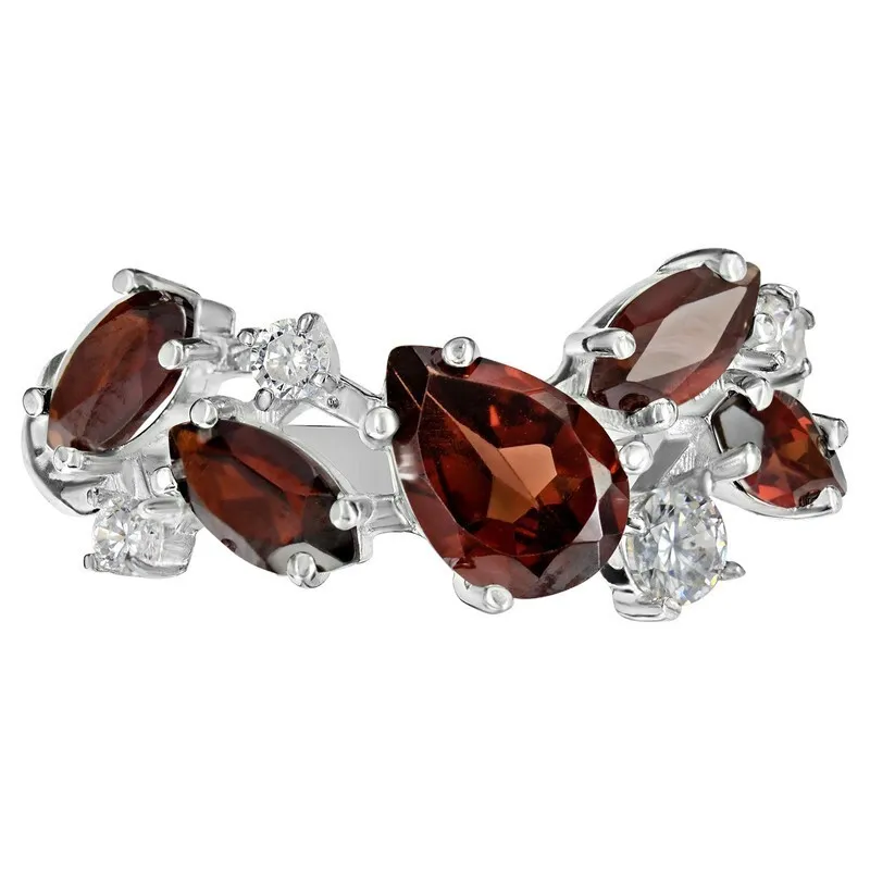 Серебряное кольцо с натуральным гранатом - коллекция Росинка / покрытие Палладий