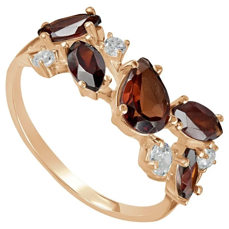 Серебряное кольцо с натуральным гранатом - коллекция Росинка. Серебряное кольцо 925 пробы с покрытием розовое золото. Цвет покрытия соответствует швейцарскому цветовому стандарту NIHS -4N и цвету розового золота 585 в России. На последней фотографии мы разместили сравнительную фотографию 3 цвета золотого покрытия. Помимо предания золотого цвета Вашему изделию, тонкий слой золота защищает от окисления. Для более стойкого эффекта золочения и долговечности покрытия мы дополнительно наносим подслой палладия (Pd). Средний вес изделия с камнями 2.55 гр. Месторождение: Гранат (Кольский п-ов, Россия). Гранат (Натуральный) груша 5*7 мм., средний вес: 0.79 карат. Все изделия собственного производства, гарантия 12 месяцев. Арт. 8432. Гранат называют камнем любви. Он дарит своим обладательницам мудрость, а владельцам – решительность и храбрость. Данному камню присущи лечебные свойства, давным-давно он использовался при ранениях. Считалось, что он помогает поддерживать связь с миром мертвых.