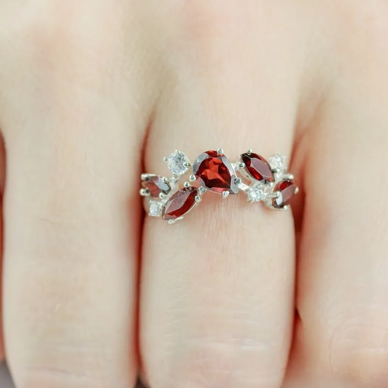 Серебряное кольцо с натуральным гранатом - коллекция Росинка. Средний вес изделия с камнями 2.55 гр. Месторождение: Гранат (Кольский п-ов, Россия). Гранат (Натуральный) груша 5*7 мм., средний вес: 0.79 карат. Все изделия собственного производства, гарантия 12 месяцев. Арт. 8432. Гранат называют камнем любви. Он дарит своим обладательницам мудрость, а владельцам – решительность и храбрость. Данному камню присущи лечебные свойства, давным-давно он использовался при ранениях. Считалось, что он помогает поддерживать связь с миром мертвых.